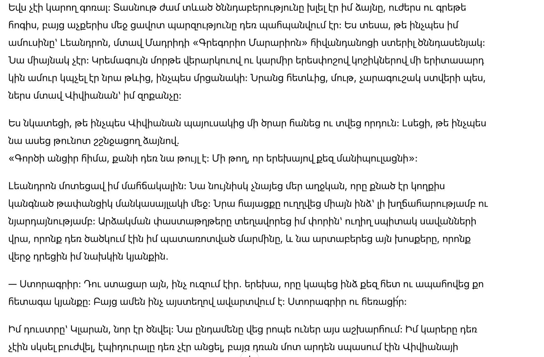 Леандро промолчал. Он опустил взгляд и продолжил есть. Эта тишина была более болезненной, чем её слова.