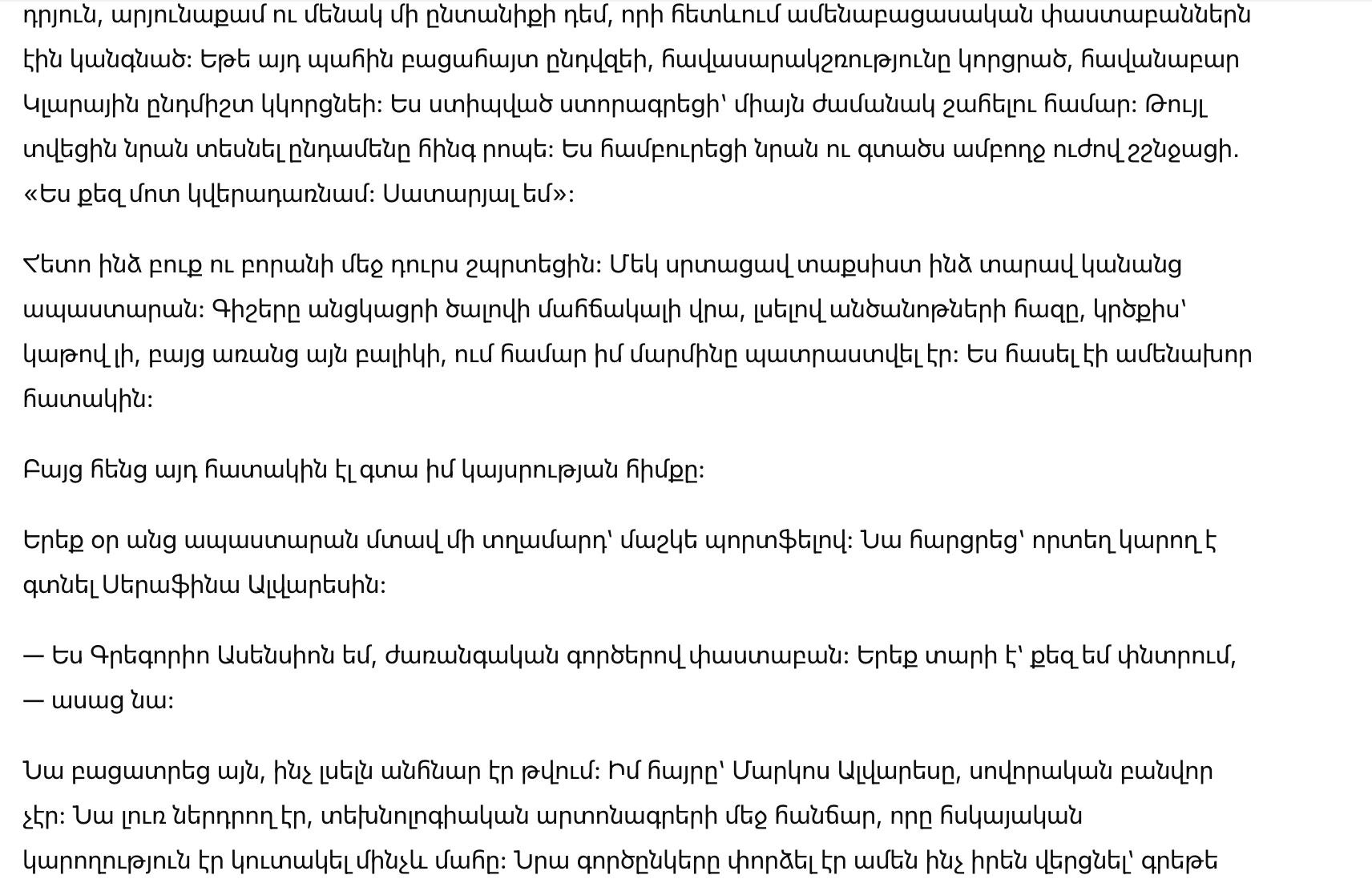 — Я Грегорио Асенсио, адвокат по наследственным делам. Я искал тебя три года.