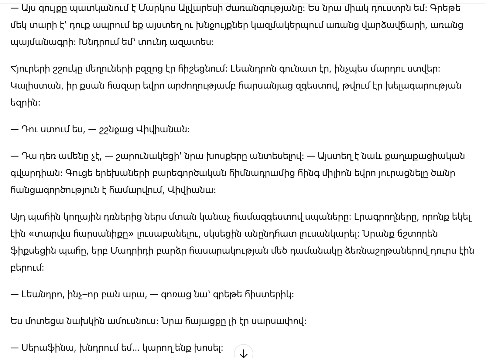 Леандро пытался вмешаться, но она прервала его жестом.