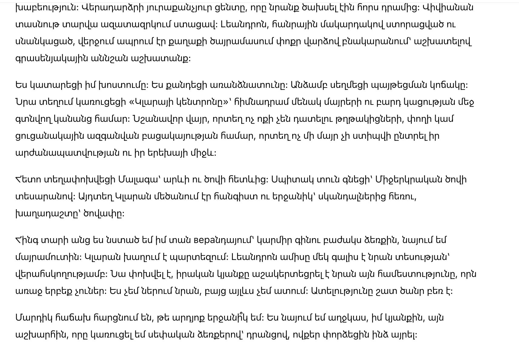 Когда Клара родилась, крича и полна жизни, я почувствовала, что выиграла войну. Она была идеальна. Десять пальцев на руках, десять на ногах и тёмные глаза, которые смотрели на меня с древней мудростью.