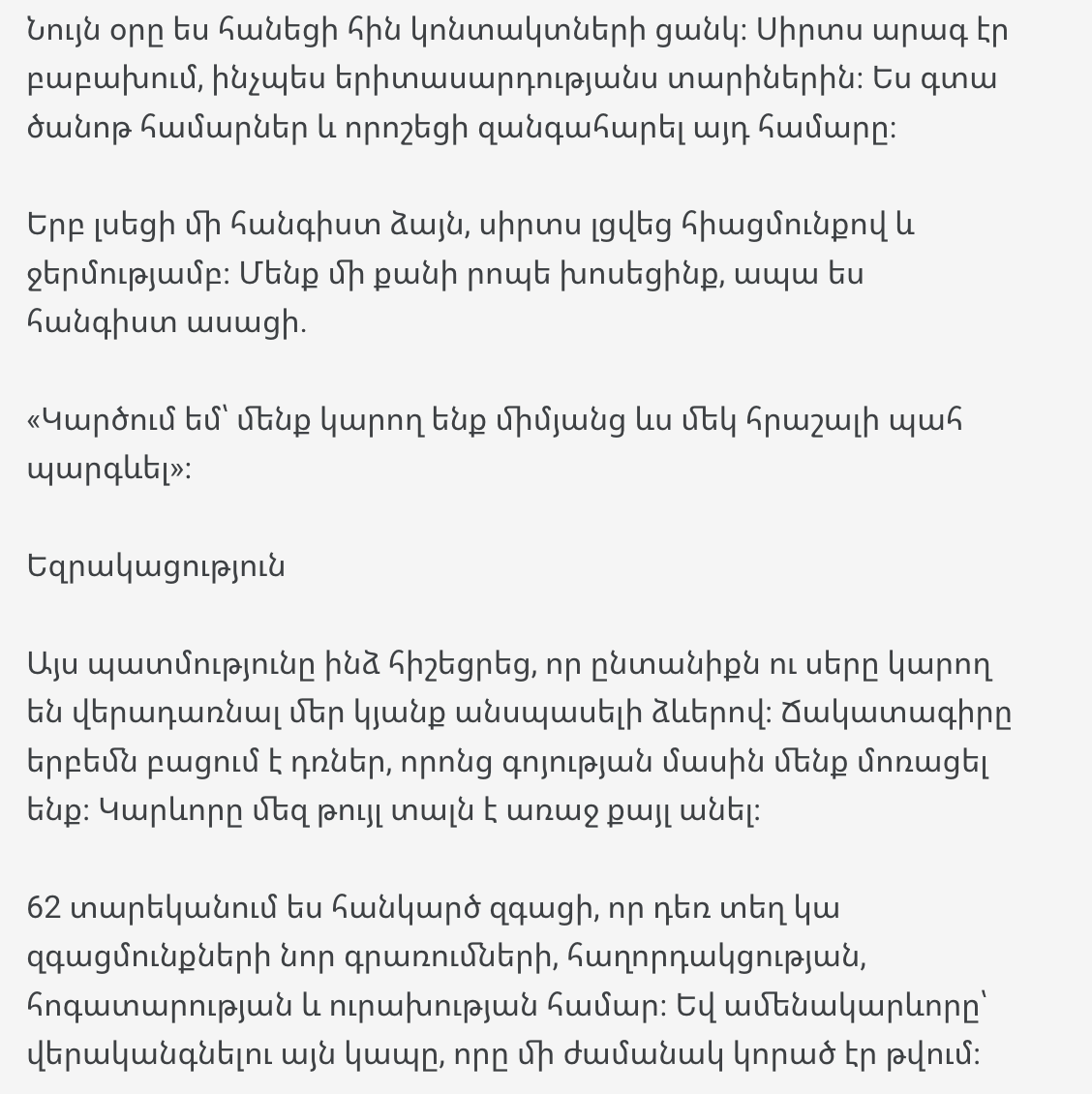 Он оставил номер телефона отца и попросил меня связаться с ним, если в сердце есть место для теплых воспоминаний и новой главы в жизни.