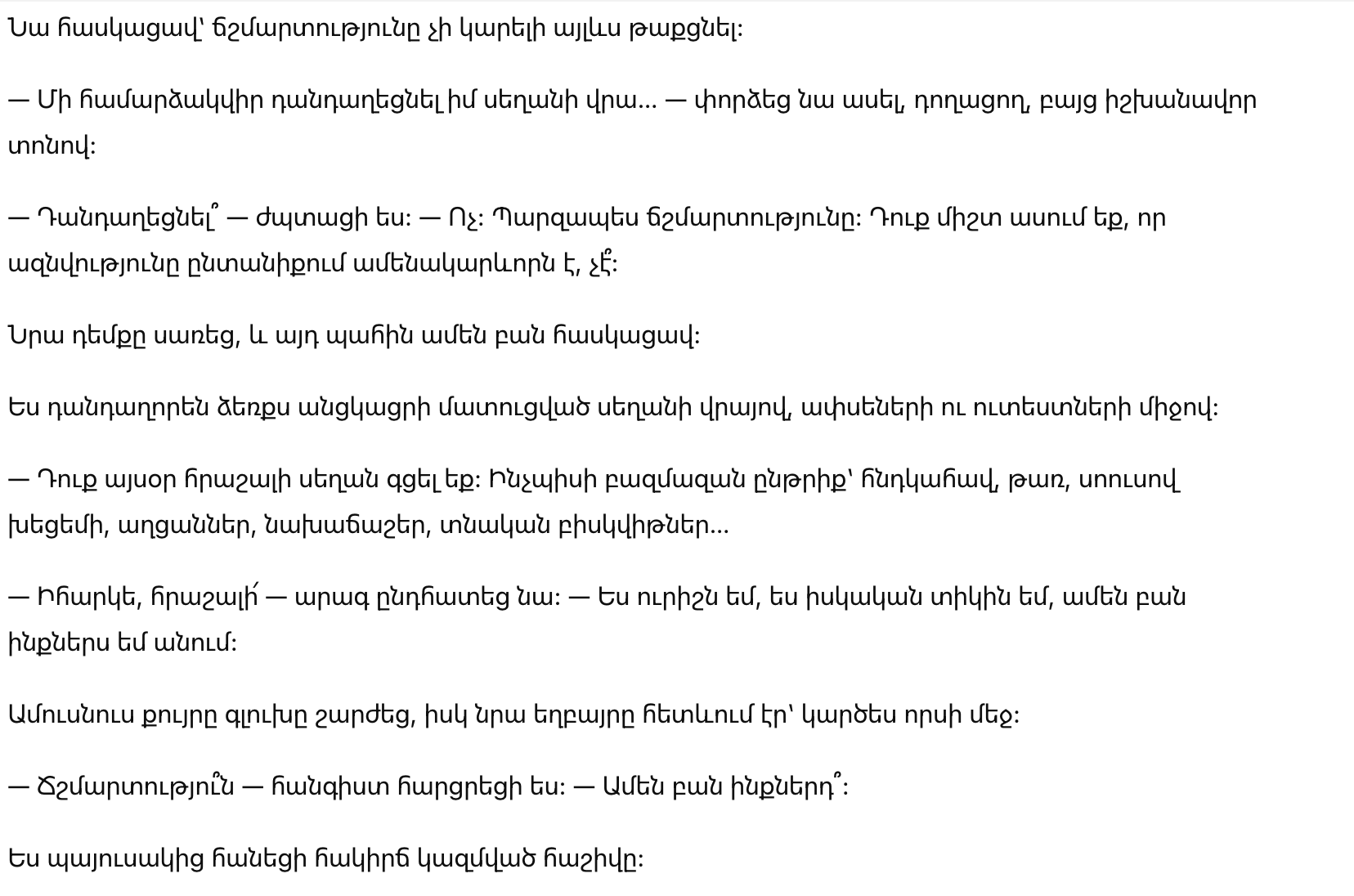 — Сцену? — улыбнулась я. — Нет. Просто правду. Ведь вы всегда говорите, что честность — главное в семье, не так ли?