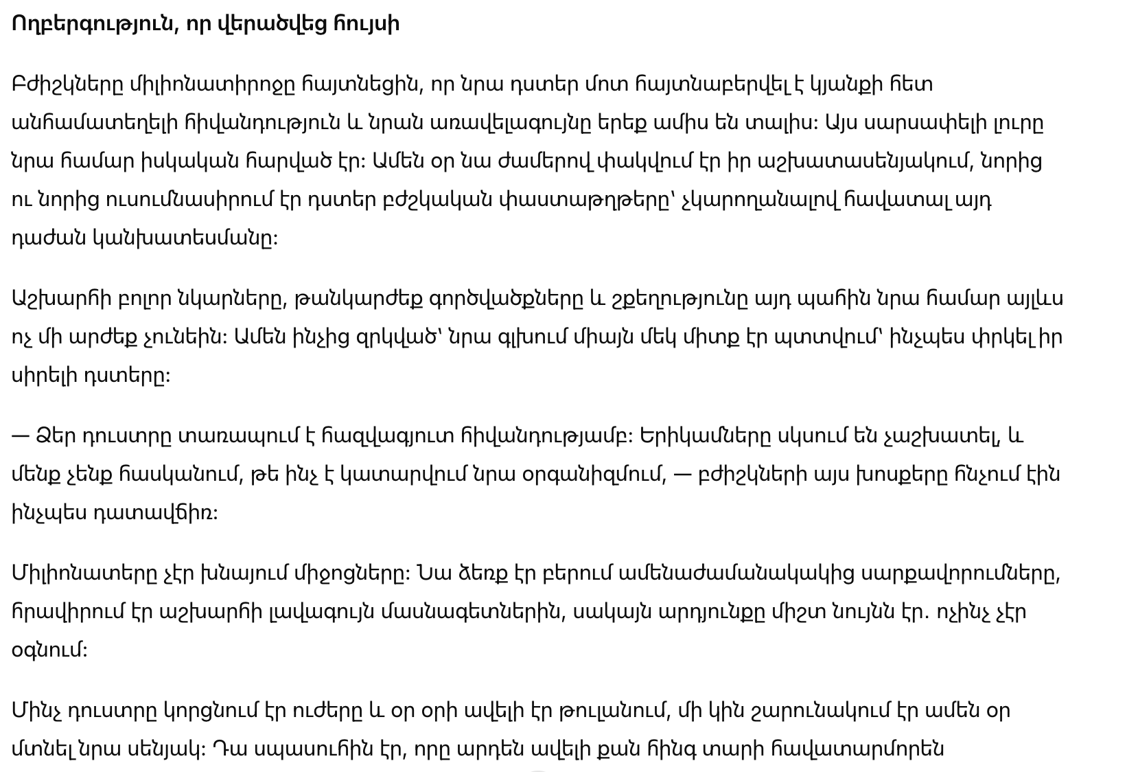 — Ваша дочь страдает от редкой болезни. Почки начинают отказывать, и мы не понимаем, что именно происходит с её организмом. — эти слова врачей звучали как приговор.