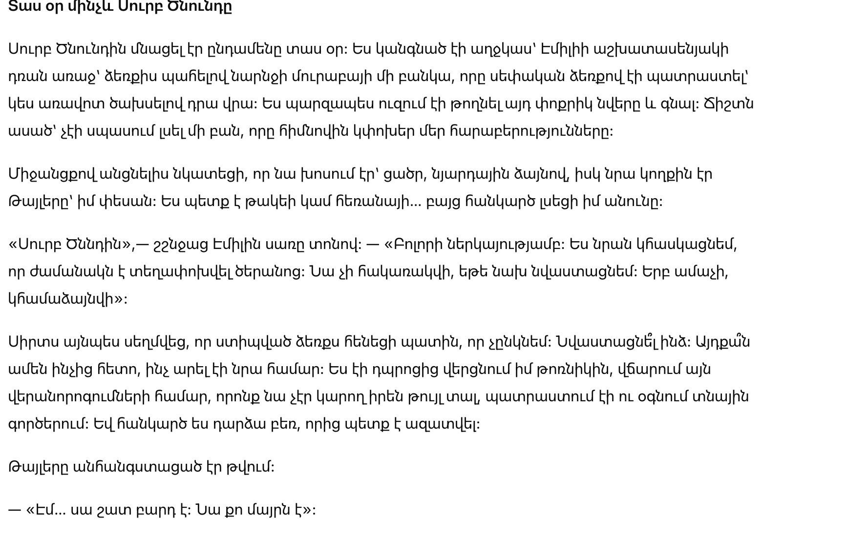Я не знаю, как закончится наша история. Возможно, она поймёт. Возможно, будет в гневе. Возможно, мы восстановим что-то более здоровое. А может, и нет. Но впервые за долгое время ни одна из этих возможностей не пугает меня.