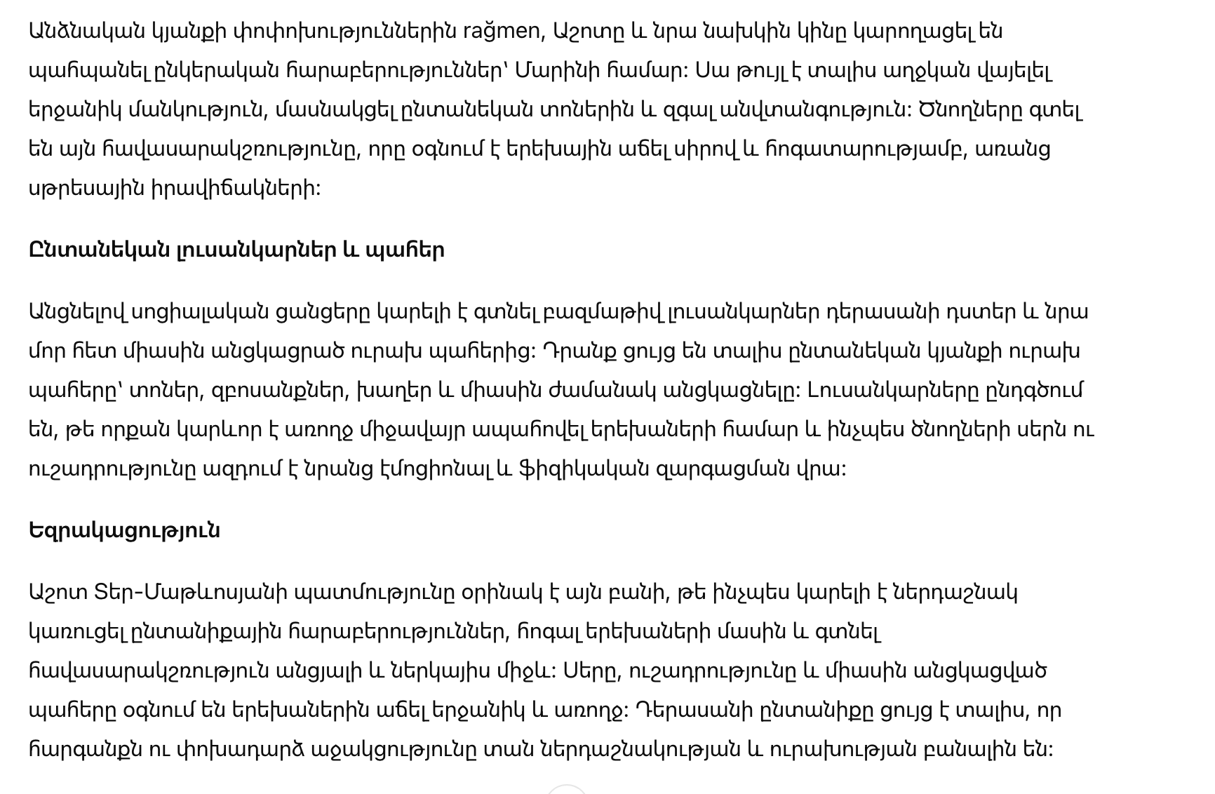 История Ашота Тер-Матевосьяна — это пример того, как можно гармонично строить отношения в семье, заботясь о детях и находя баланс между прошлым и настоящим. Любовь, внимание и совместные моменты помогают детям расти счастливыми и здоровыми. Семья актера доказывает, что уважение и поддержка друг друга — ключ к гармонии и радости в доме.