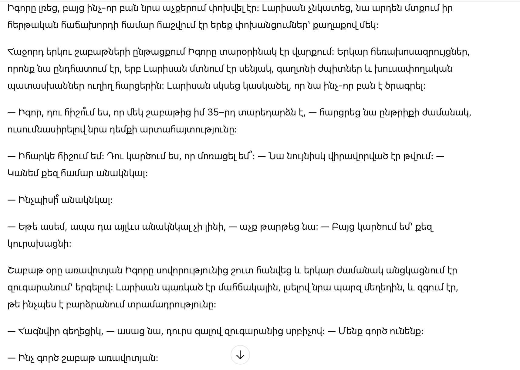 Она вернулась домой около семи вечера. Игорь сидел на кухне, волосы растрепаны, он уставился в стену.
