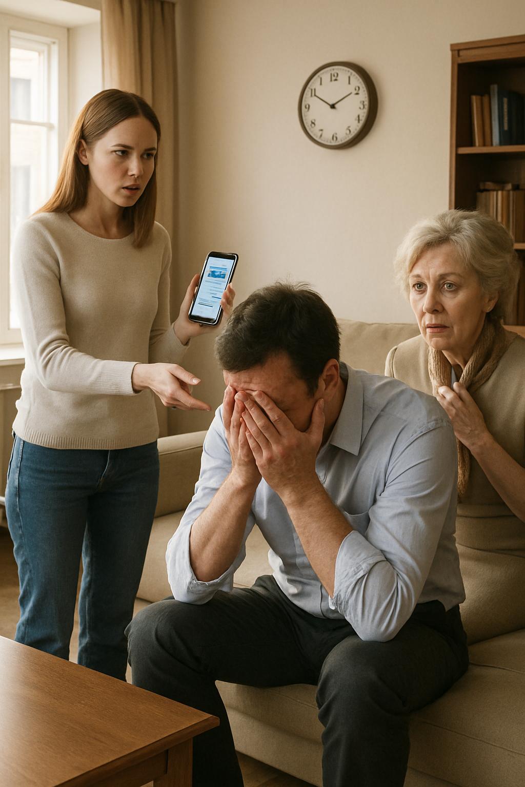 Максим сел на диван, накрыв лицо руками. Его плечи дрожали – от гнева или стыда не было видно.