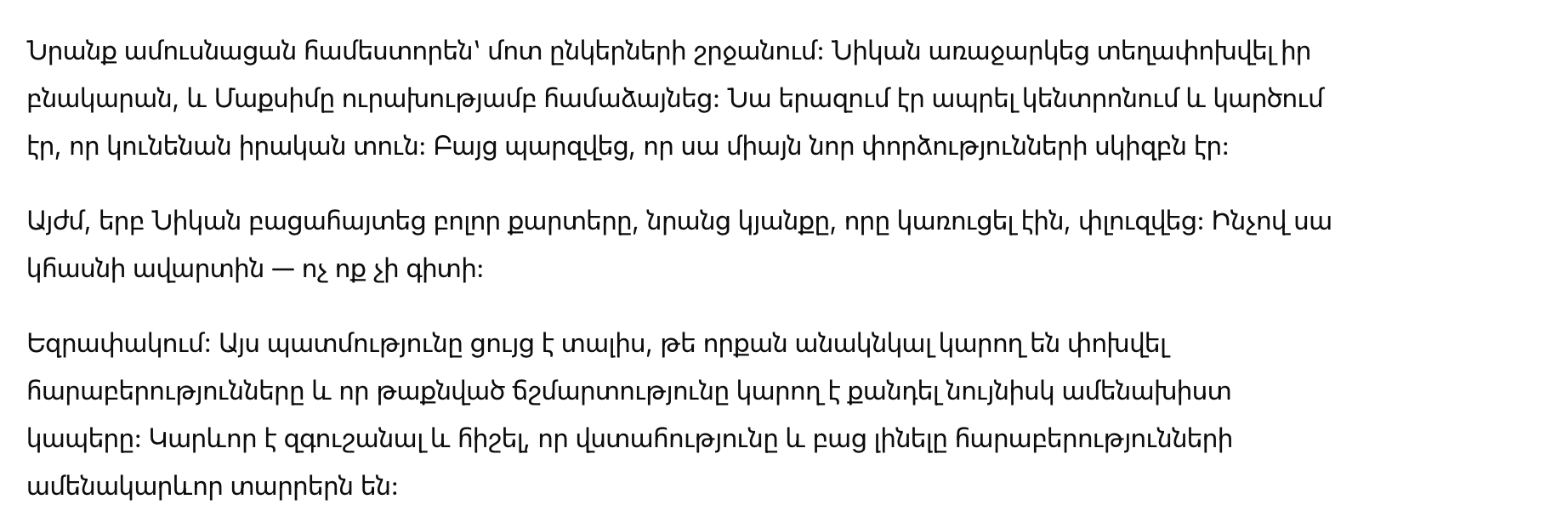 Заключение: Эта история показывает, как неожиданно могут измениться отношения и что скрытая правда может разрушить даже самые крепкие узы. Важно быть осторожным и помнить, что доверие и открытость – ключевые моменты в любых отношениях.