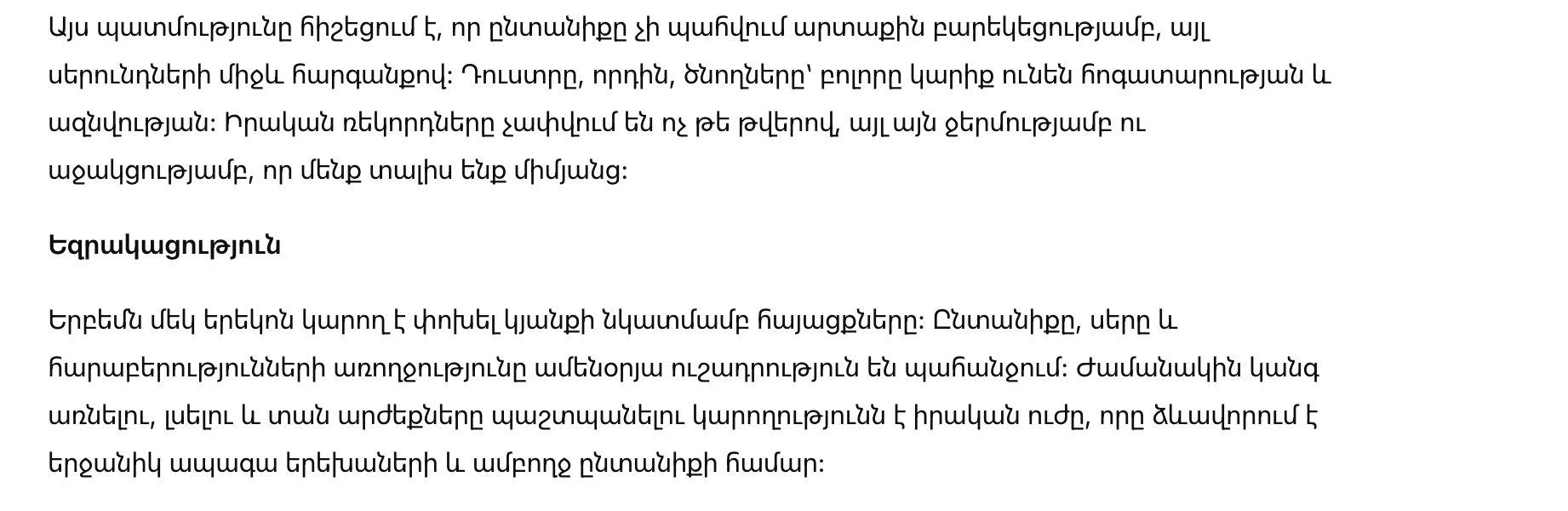 — Семья строится на доверии, уважении и любви. Без этого никакие достижения, никакие рекорды в работе и статусе не имеют значения.