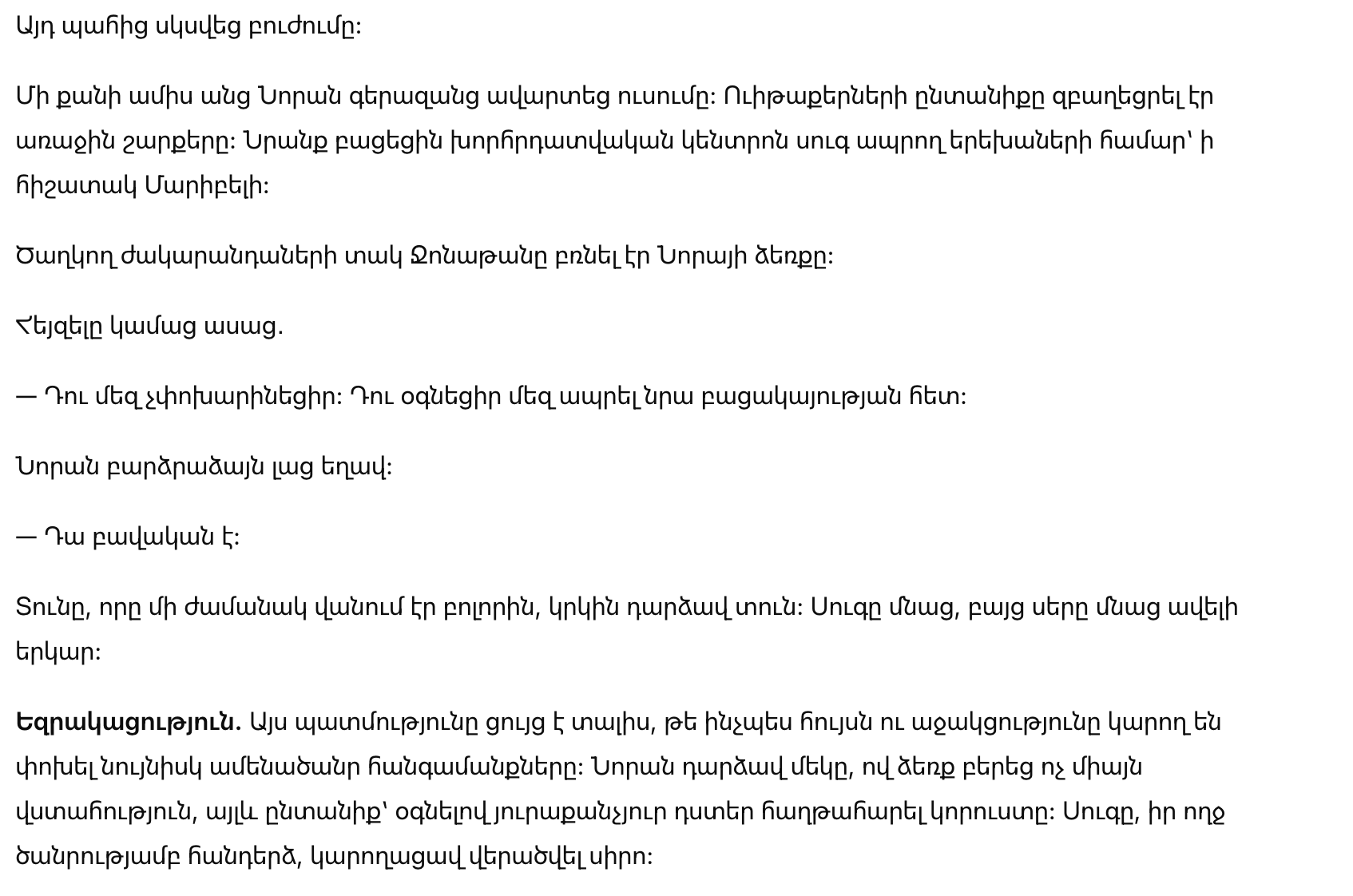 Заключение: Эта история показывает, как надежда и поддержка могут изменить даже самые трудные обстоятельства. Нора стала тем, кто обрел не только доверие, но и семью, помогая каждой из дочерей справиться с утратой. Горе, несмотря на свою тяжесть, смогло переродиться в любовь.