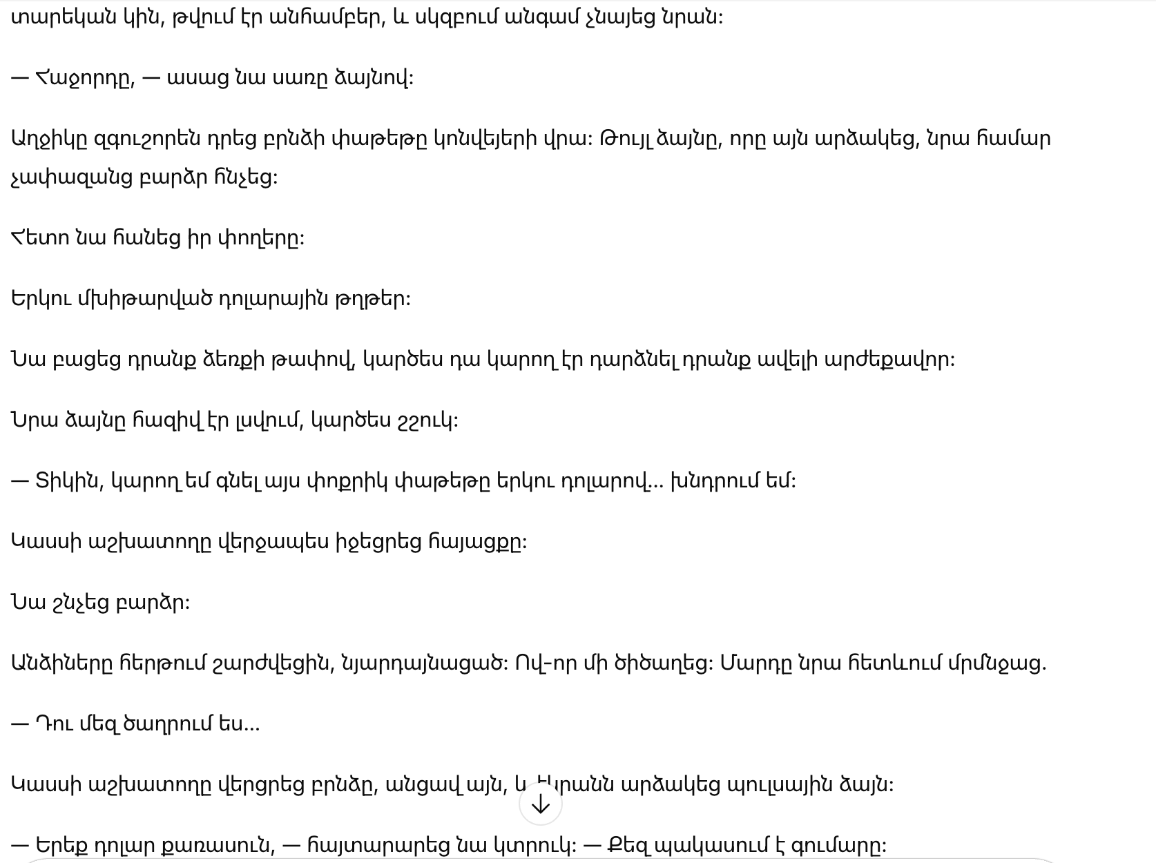 Когда она подошла к кассе, кассирша – женщина с сильно подведенными глазами около сорока, казалась нетерпеливой и даже не взглянула на нее сначала.