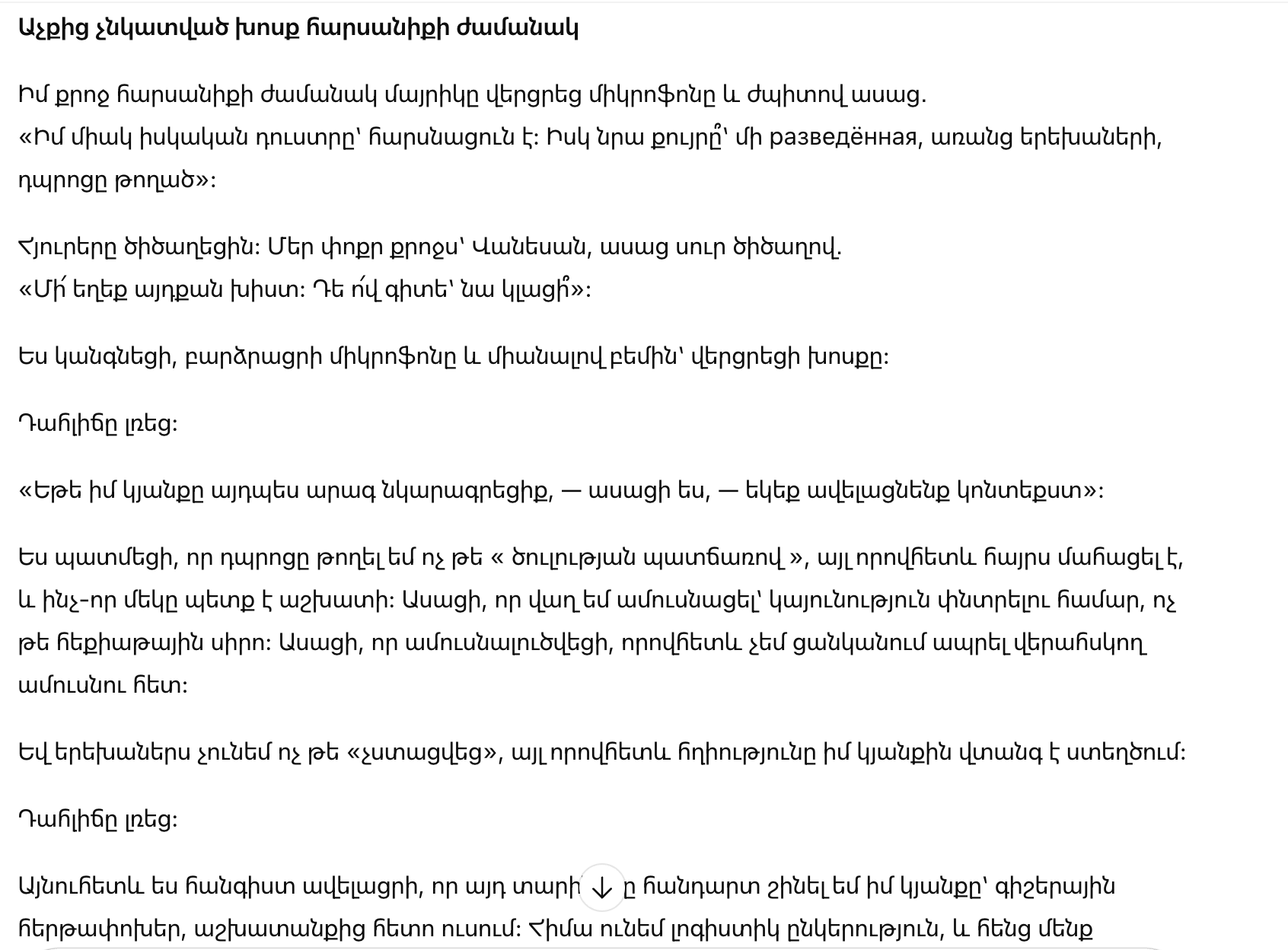 «Ты не должна была этого делать,» резко сказала она, снова потянувшись к микрофону.