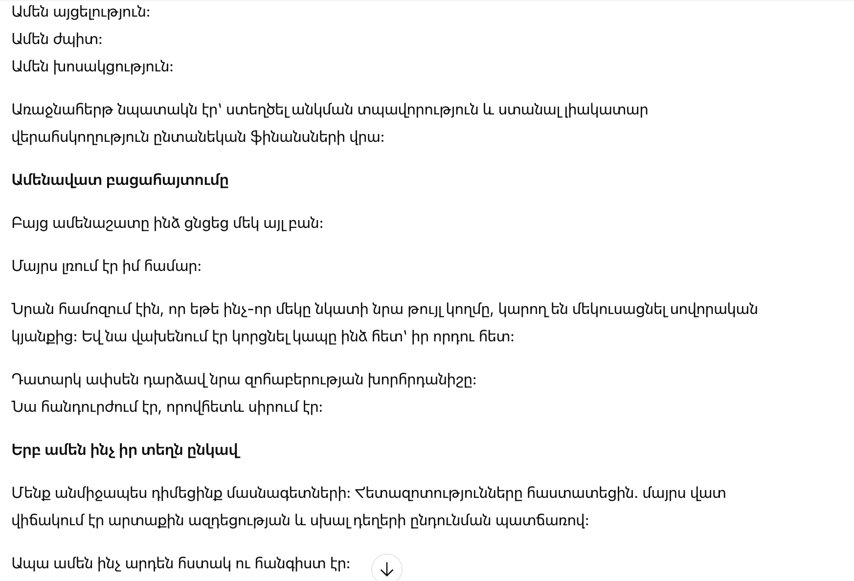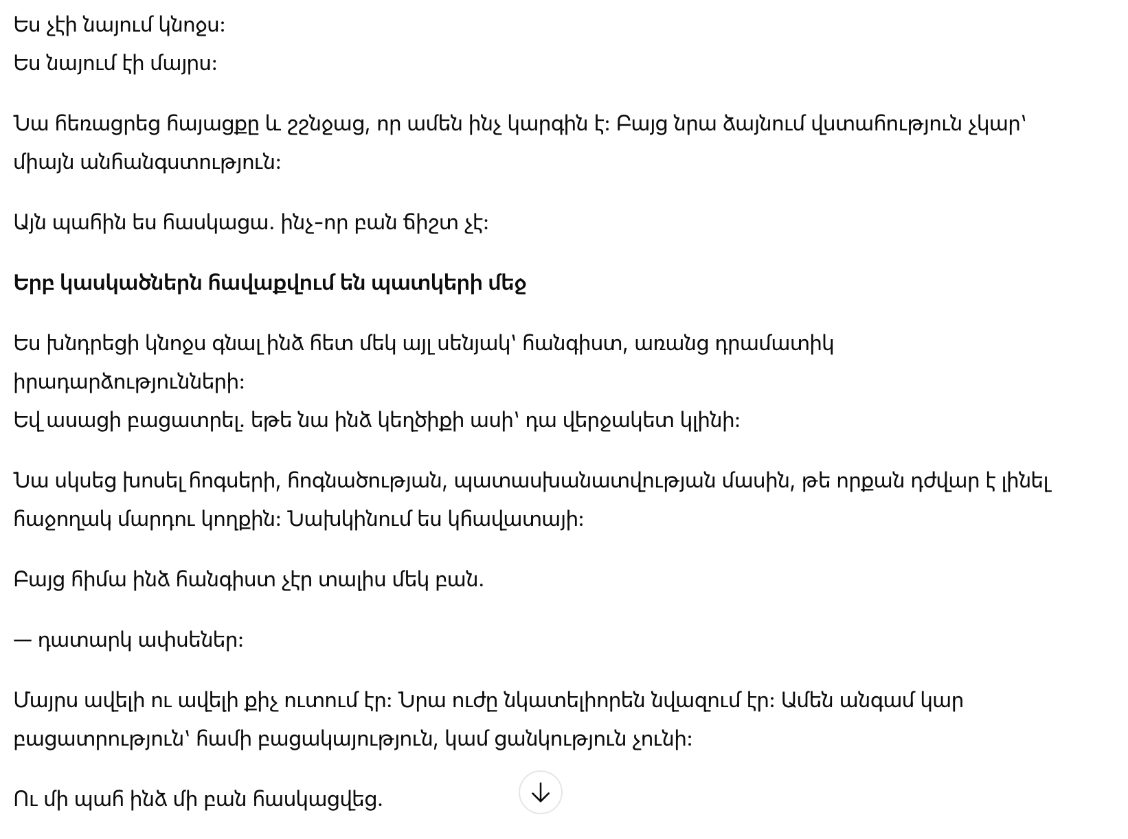 Она отвела взгляд и прошептала, что всё в порядке. Но в её голосе не было уверенности — только тревога.