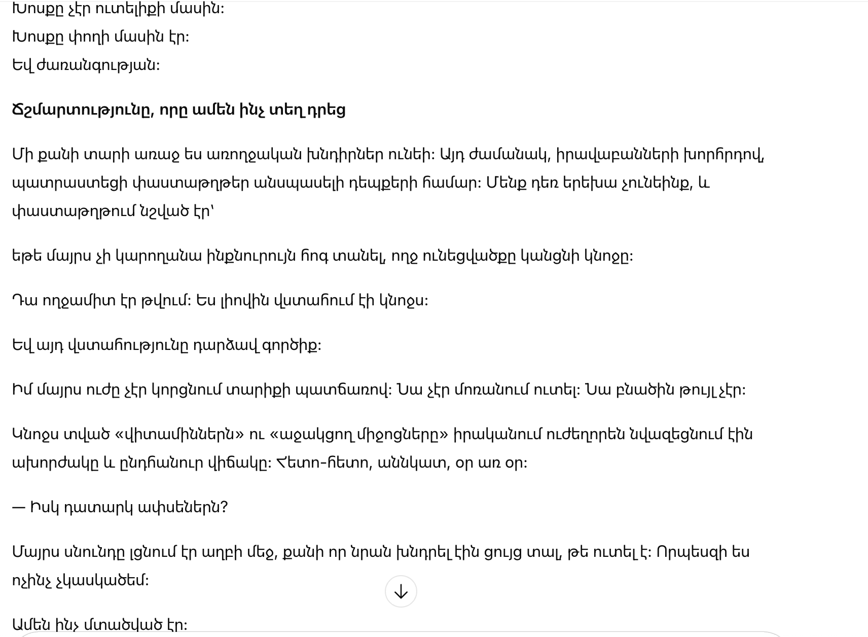 Ей внушали, что если кто-то заметит её слабость, её могут изолировать от привычной жизни. А она боялась потерять связь со мной — своим сыном.