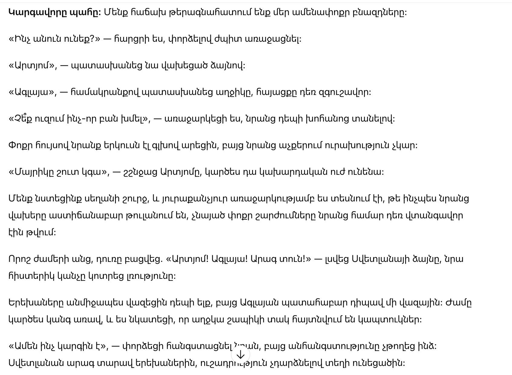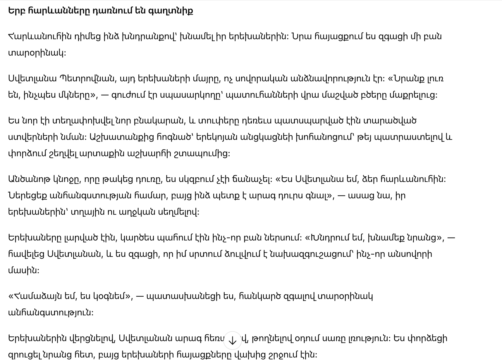 “Всё в порядке,”—попыталась я успокоить её, но какое-то тревожное чувство не покидало меня. Светлана быстро увела детей, не обратив внимания на произошедшее.