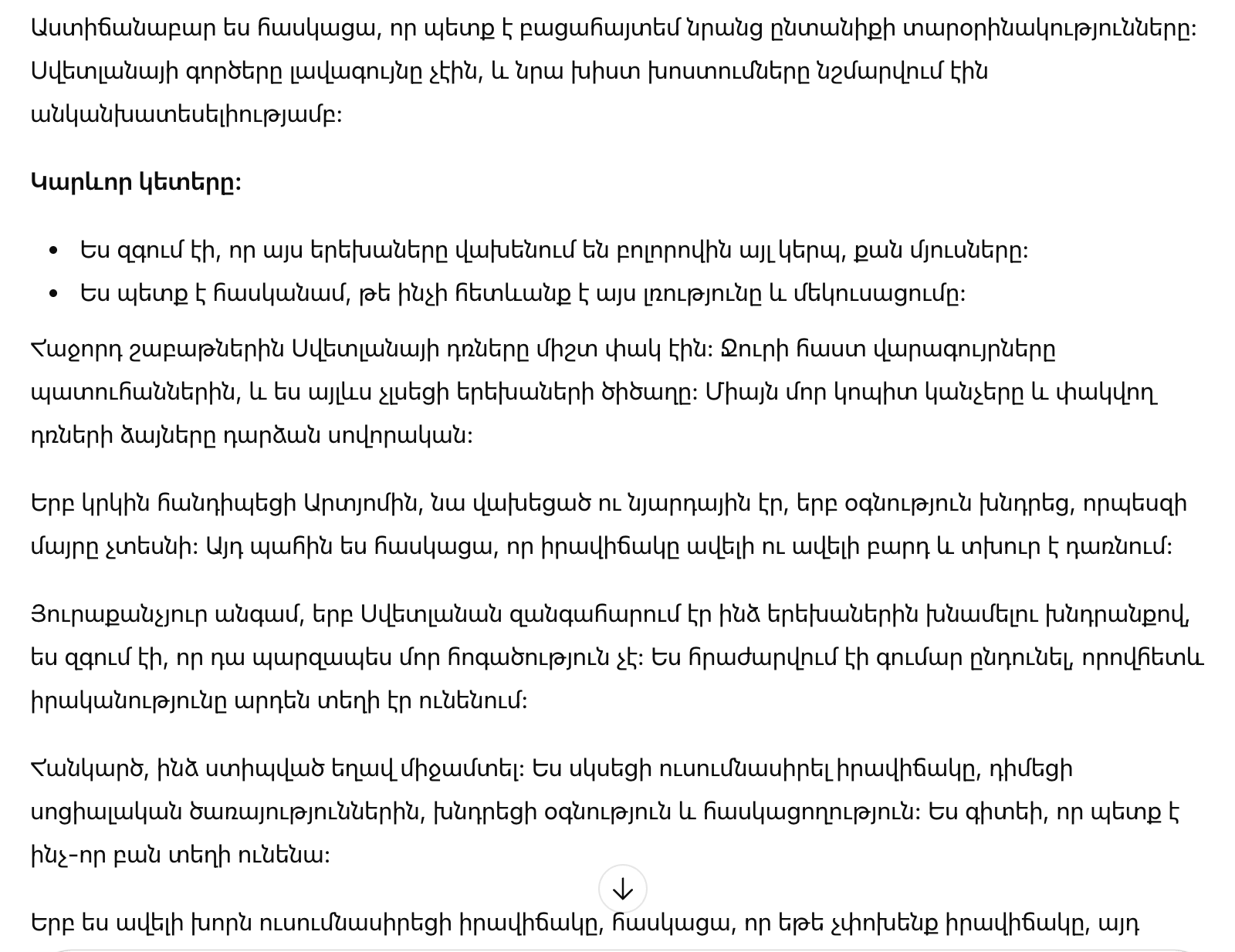 Заключение: Я проанализировала как трудно быть невидимым в обществе и как важна поддержка, чтобы рассказать правду. Важно сделать первый шаг и не оставаться в стороне, когда это касается жизни детей.