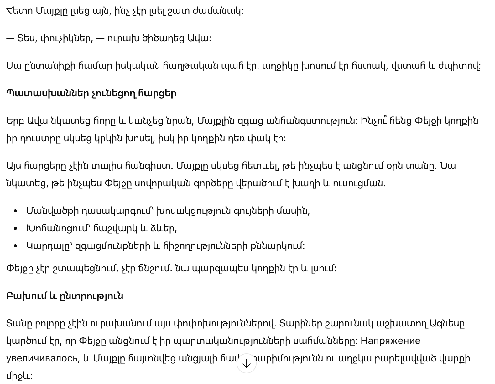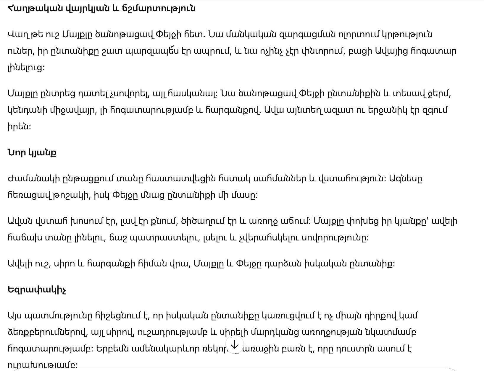 Ситуация прояснилась, когда воспитатель из детского сада сообщил, что Ава начала активно общаться с другими детьми, делиться историями и уверенно выражать мысли.