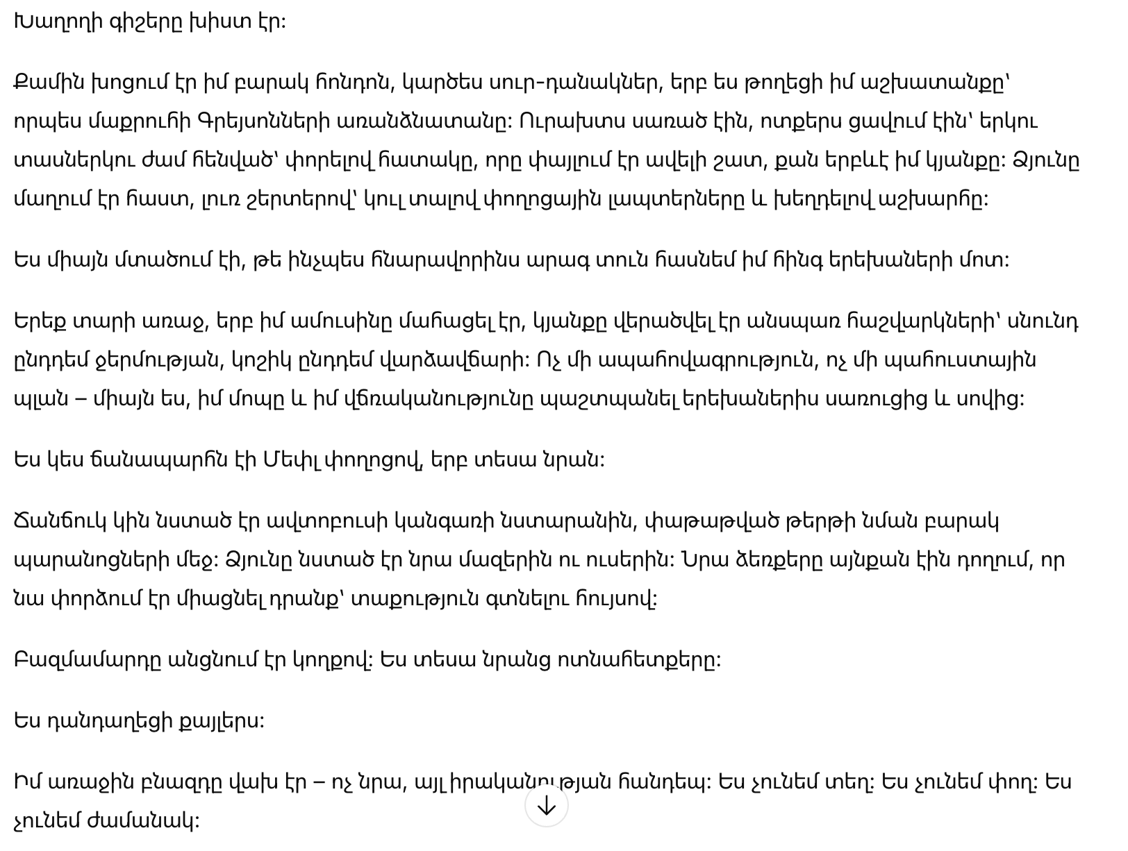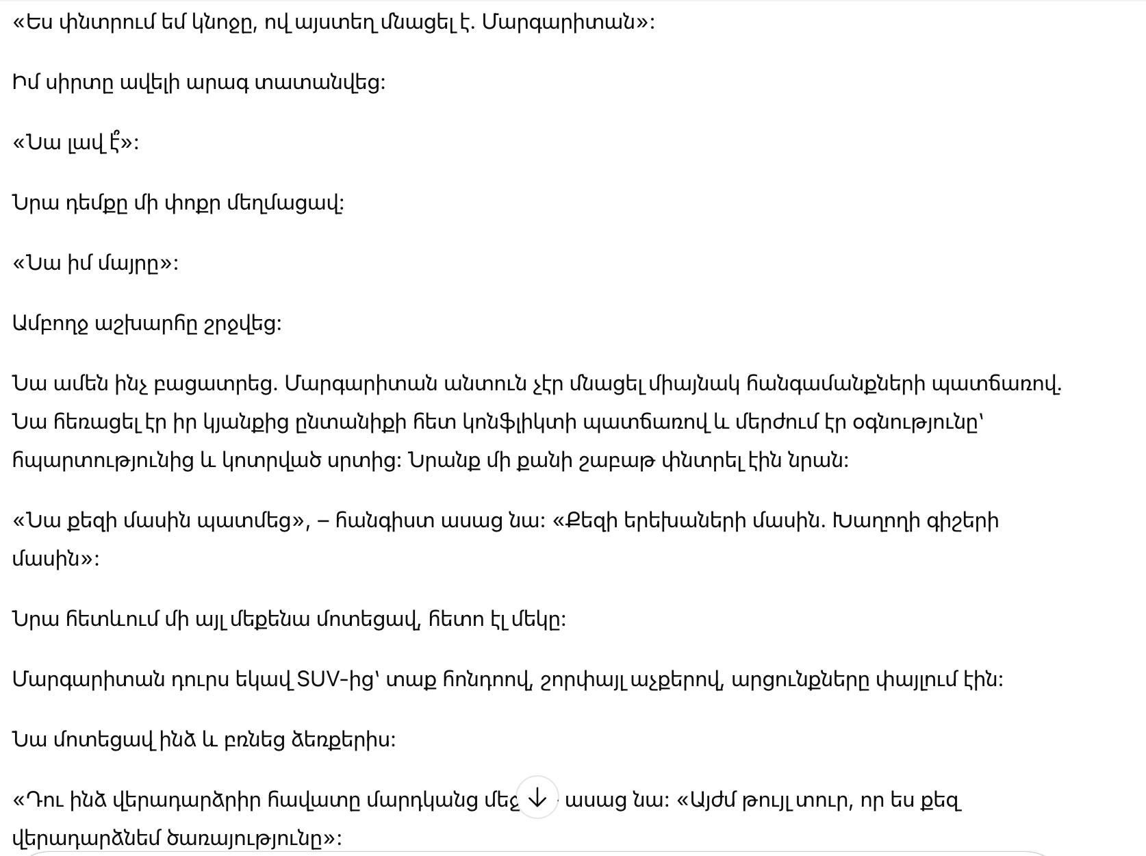 Он объяснил всё. Маргарита не оказалась бездомной только из-за обстоятельств. Она ушла от своей жизни после конфликта в семье и отказывалась от помощи из-за гордости и разбитого сердца. Они искали её несколько недель.