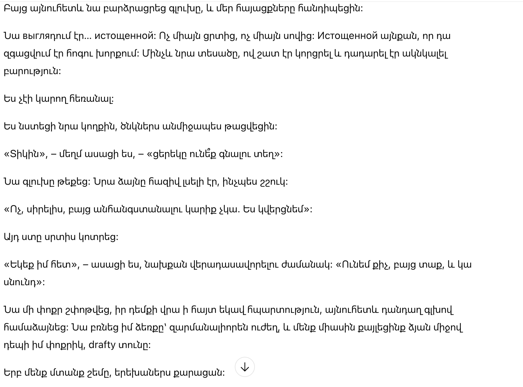 Она покачала головой. Ее голос едва слышался, словно шепот.