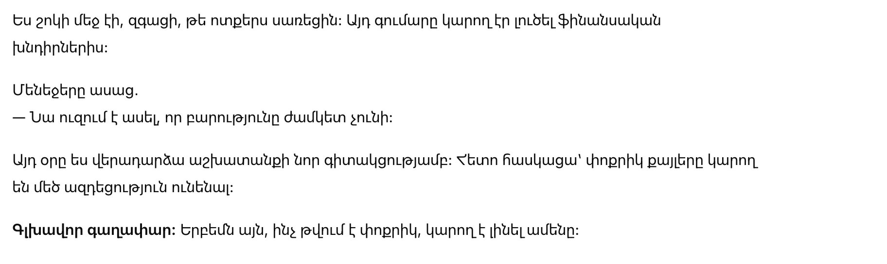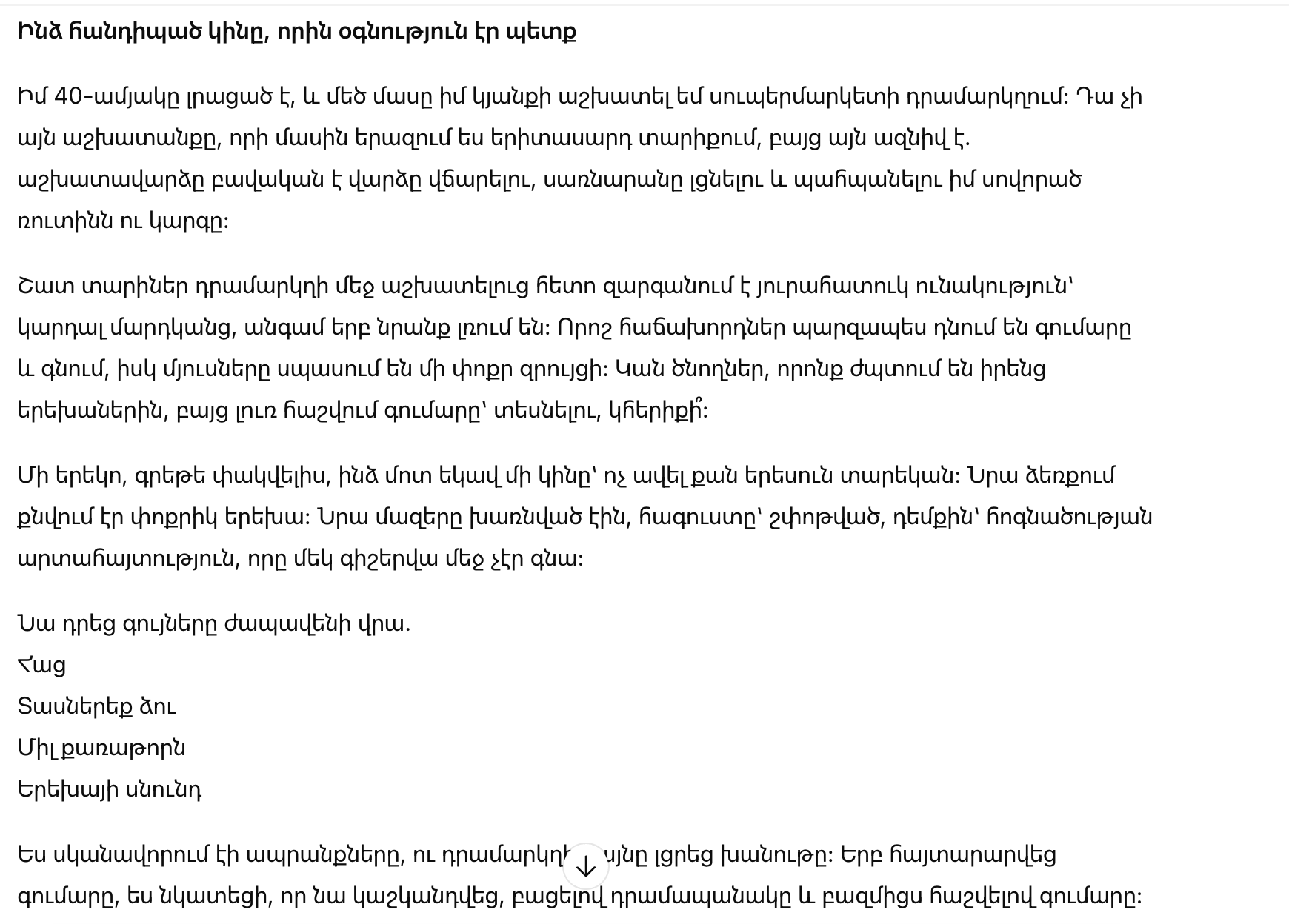 В тот день я вернулась к своей работе с новой осознанностью. Не из-за денег, а потому что поняла, что маленькие поступки могут оказать большое влияние на нас.
