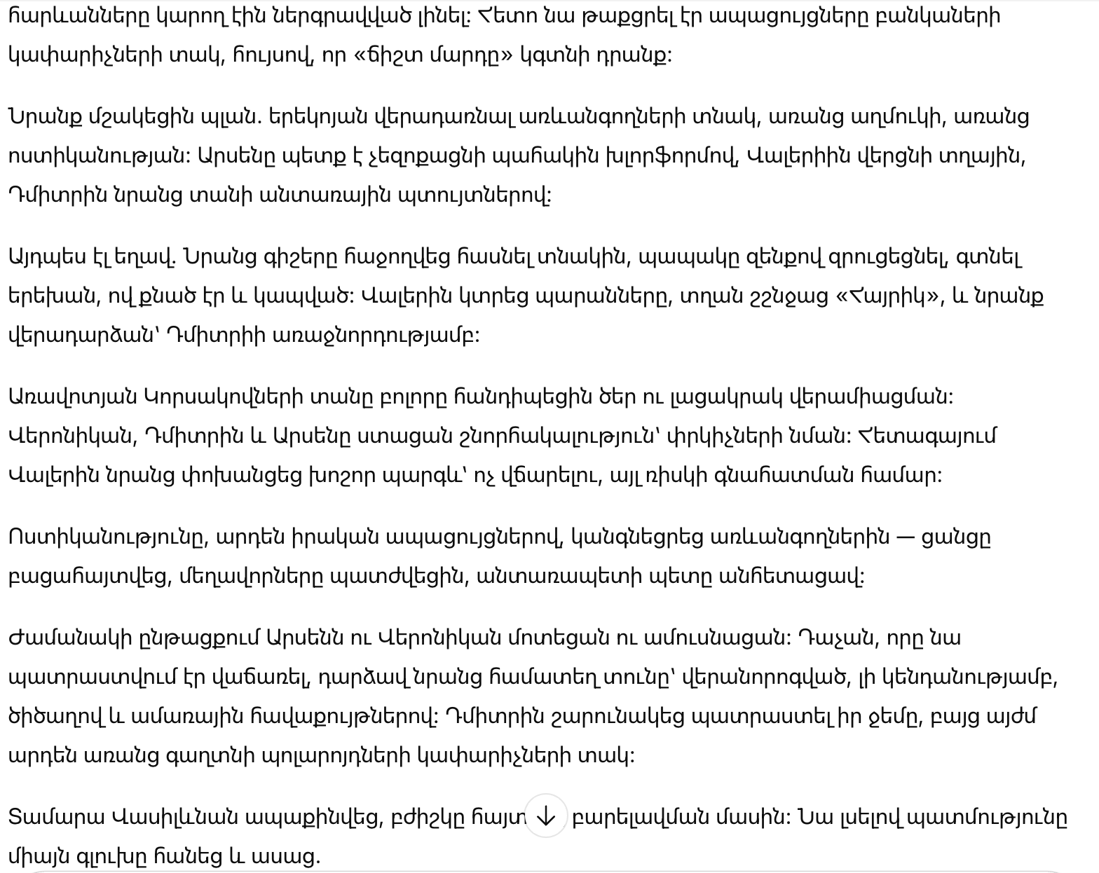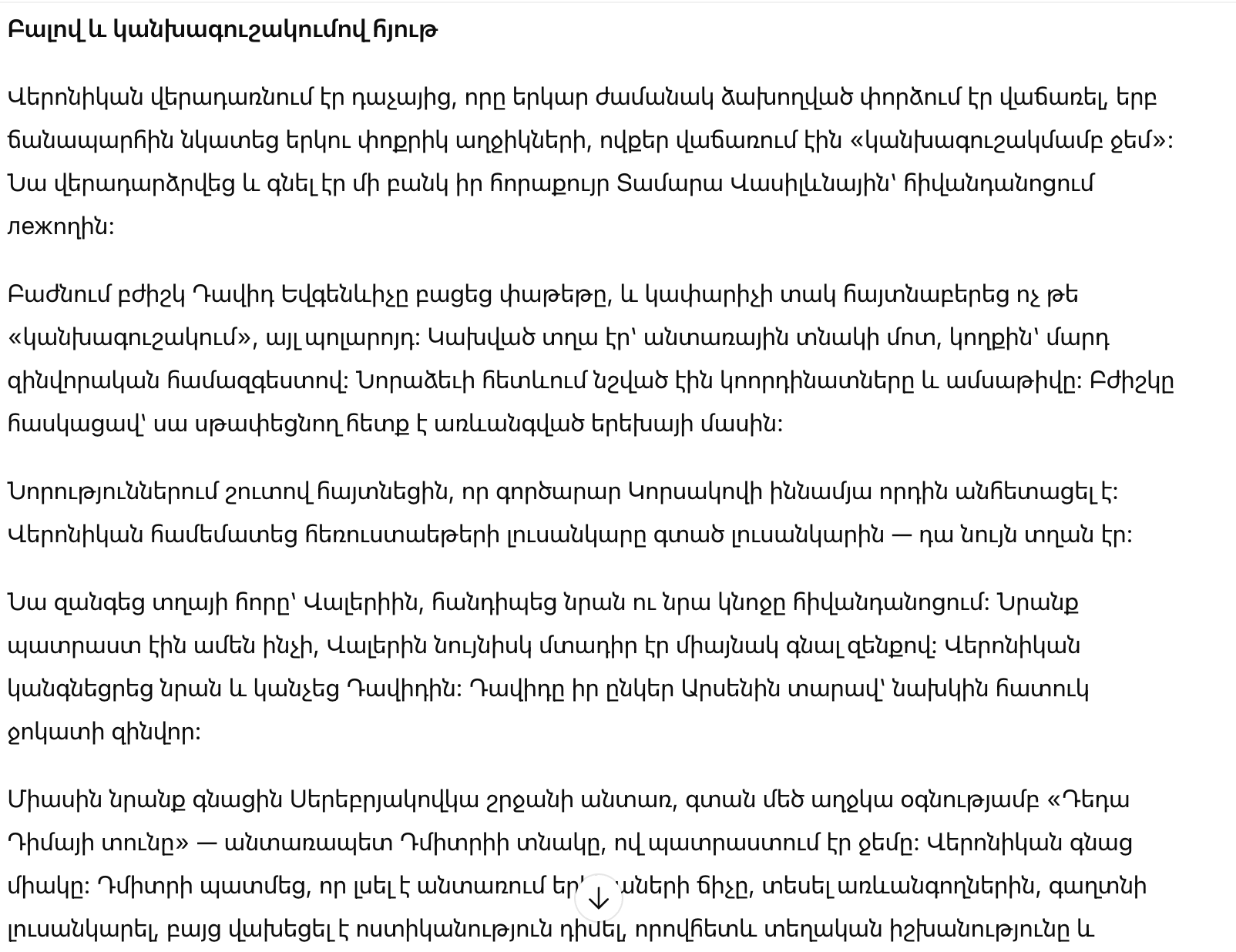 Арсен получал благодарности настолько, что был смущен. Затем он указал на Веронику, ещё наполовину сонную.