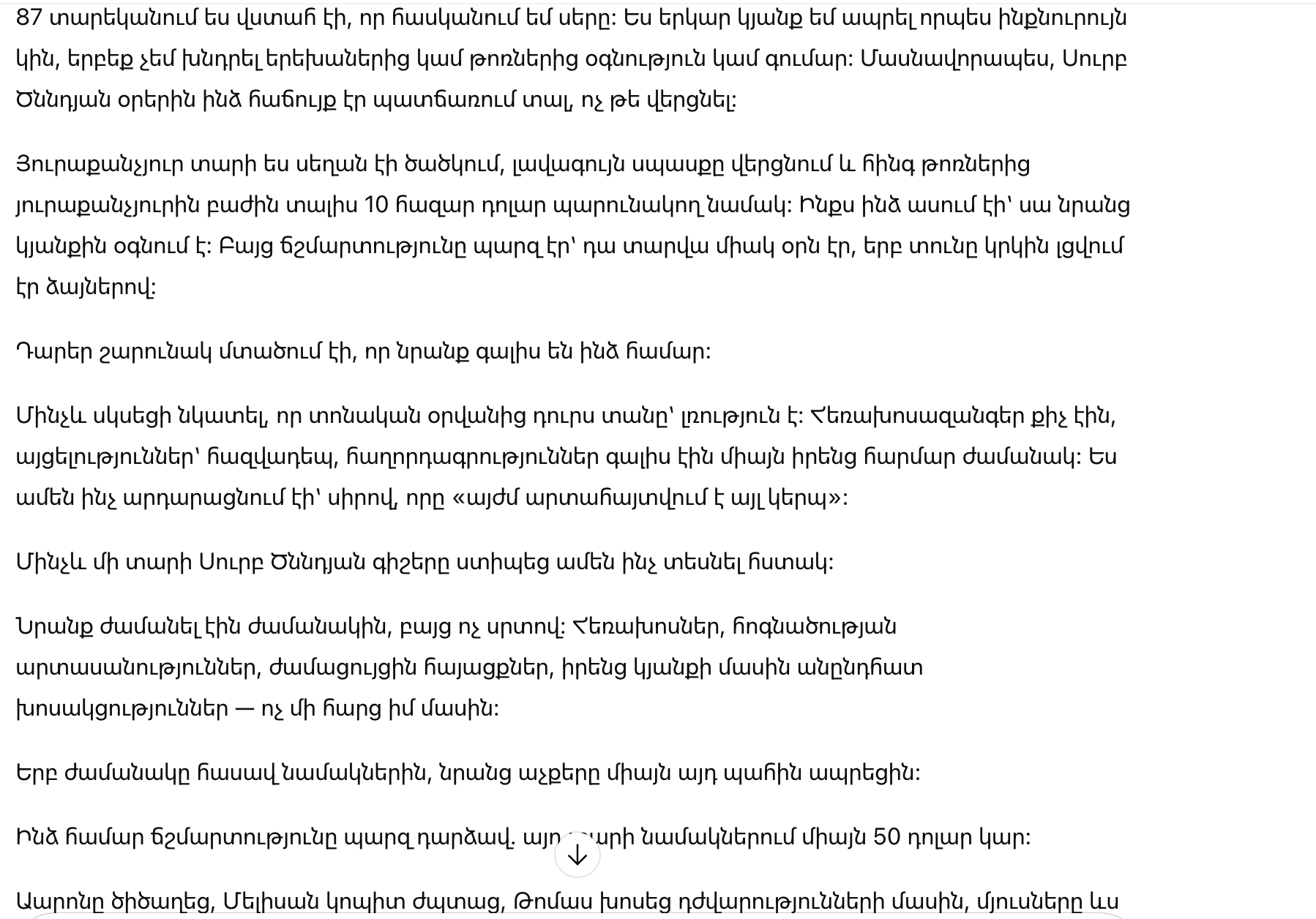 На протяжении многих лет Рождество было моим любимым временем года. Каждую Рождественскую ночь я приглашала пятерых своих внуков к себе. Я готовила за несколько дней до праздника, накрывая стол своим лучшим фарфором и зажигая свечи, которые мы с мужем купили много лет назад. После ужина, когда тарелки убирали, а в комнате царила спокойная атмосфера, я раздавала каждому внуку конверт. Внутри каждого из них было по десять тысяч долларов.