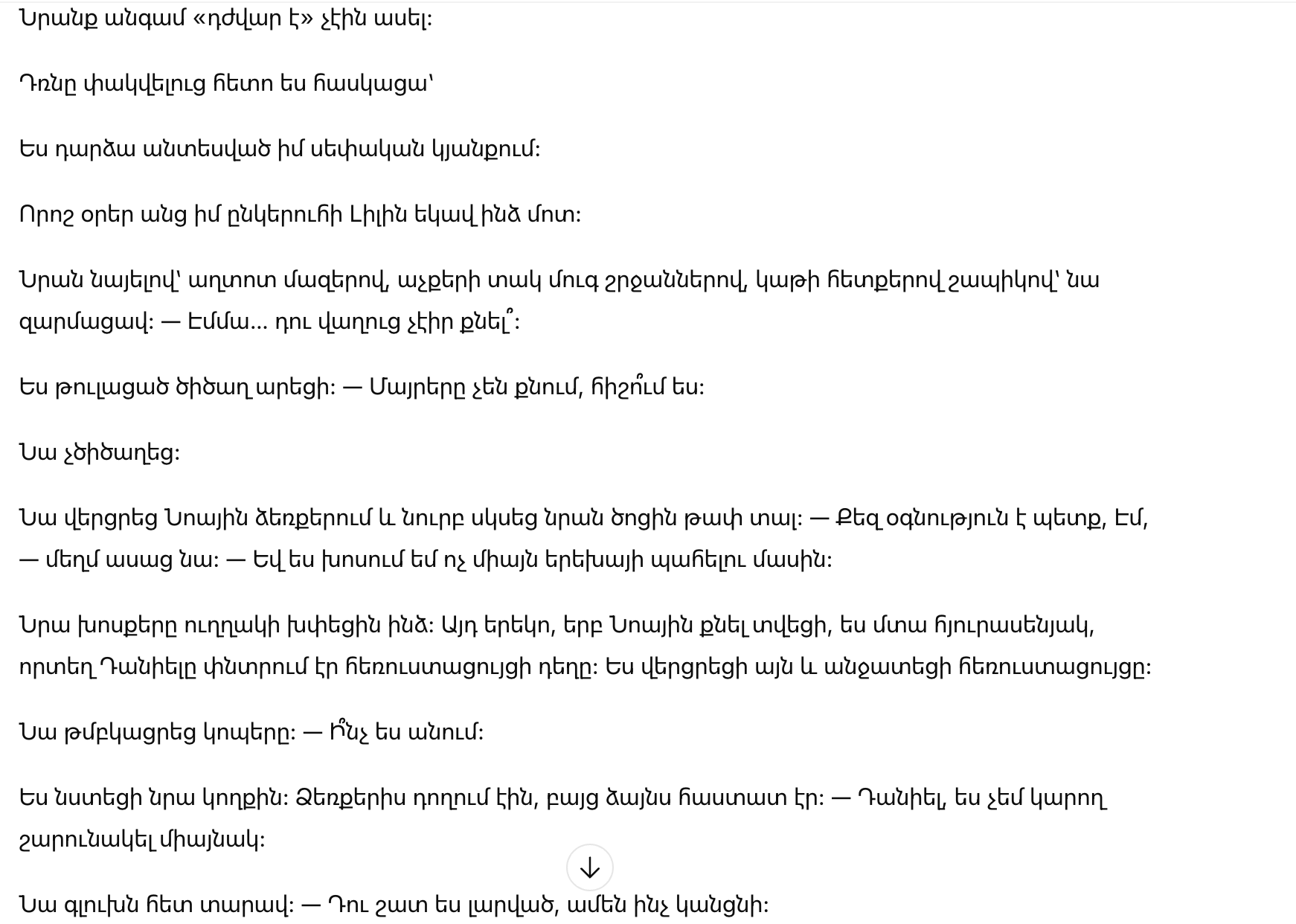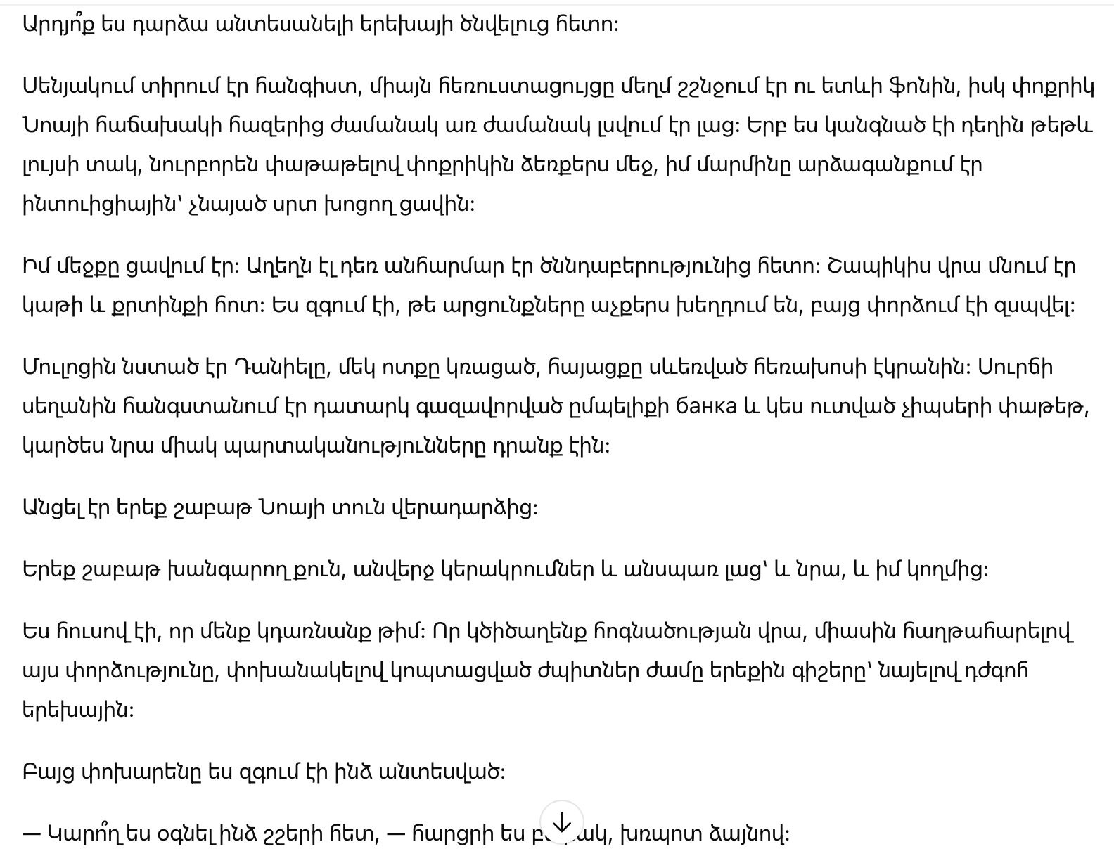Моя спина ныли от боли. Живот все еще испытывал дискомфорт после родов. На футболке остался запах молока и пота. Я чувствовала, как слезы защипывают глаза, но старалась сдерживаться.
