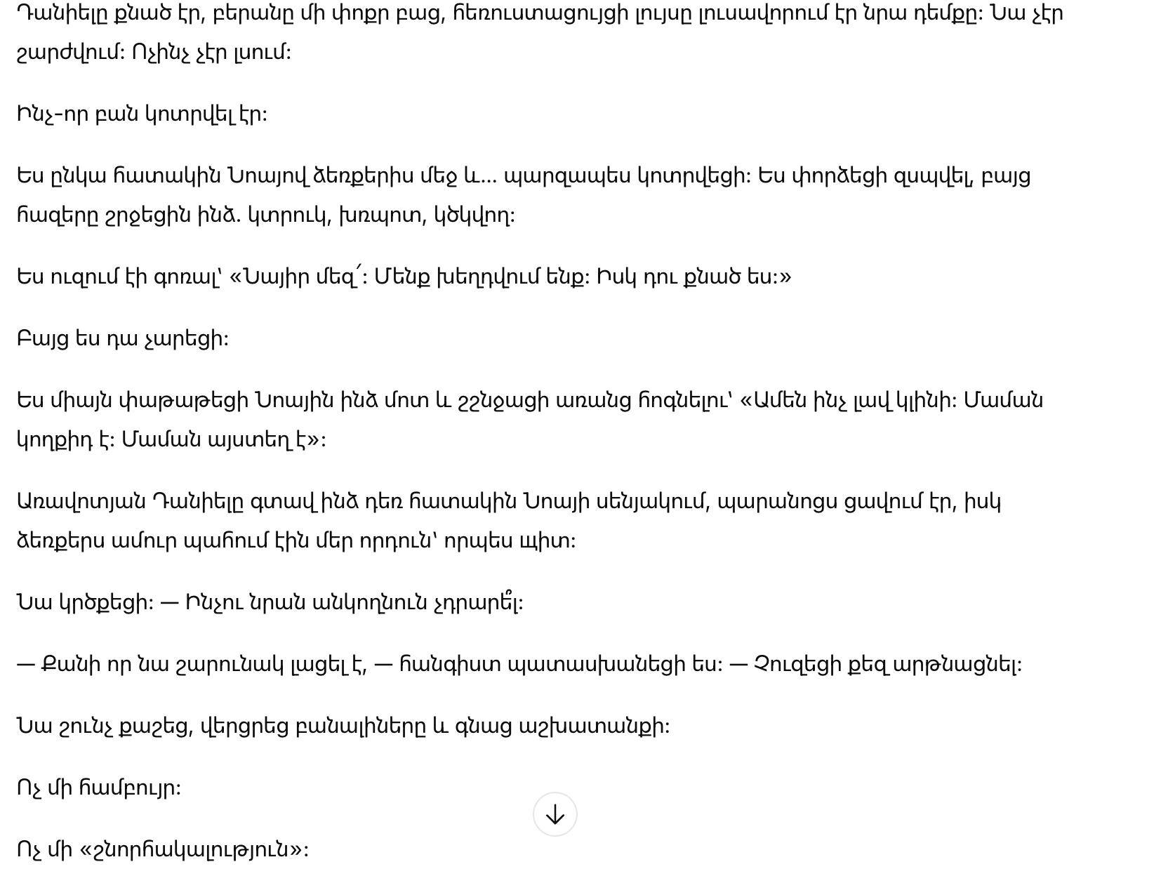 Я медленно вдохнула. «Даниэль, мне не нужно, чтобы ты был смелым. Мне нужно было, чтобы ты был рядом. Даже если ты испуган.»
