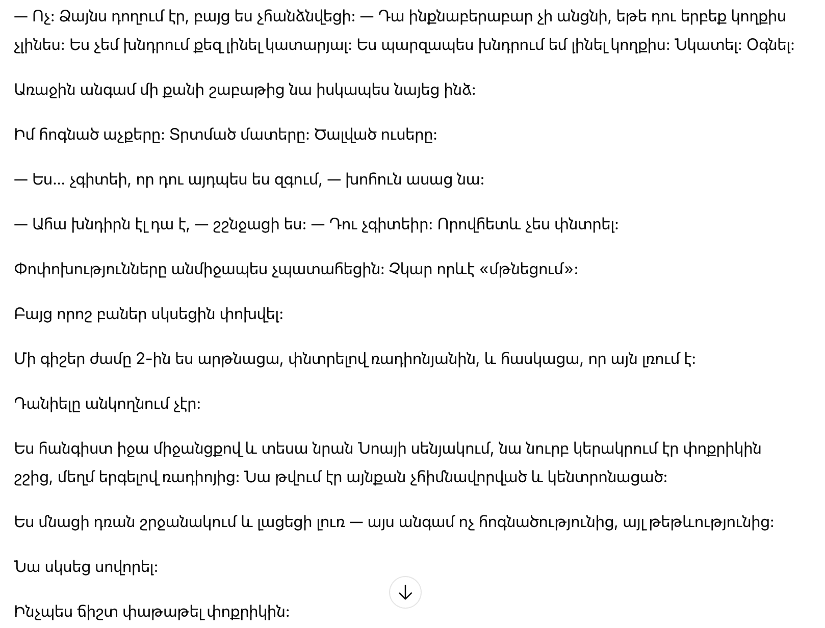 «Ты всегда казалась знающей, что делать», – признался он. «А я нет. Я боялся совершить ошибку. Думал, что если я ошибусь, ты подумаешь, что я бесполезен. Поэтому… ничего не делал.»