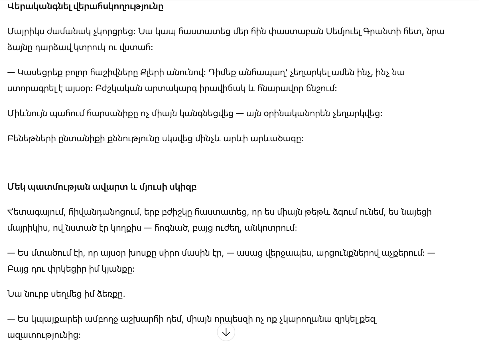 «Заморозьте все счета на имя Клэр. Срочно подайте запрос на аннулирование всего, что она подписала сегодня. Медицинская экстренная ситуация и возможное принуждение.»