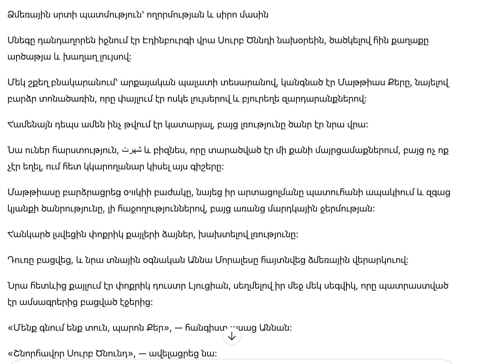 Снег медленно падал на Эдинбург в канун Рождества, накрывая старый город серебристым и спокойным светом.