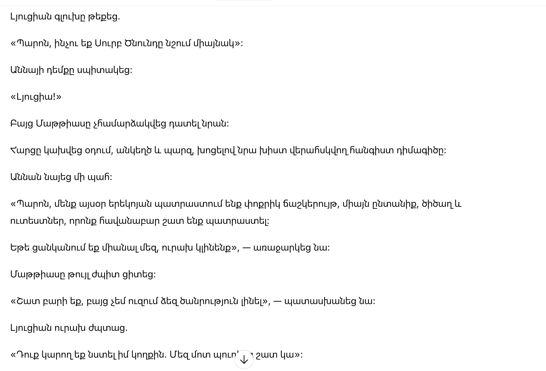 Смех Люсии раздавался, когда родственники одновременно переговаривались.
