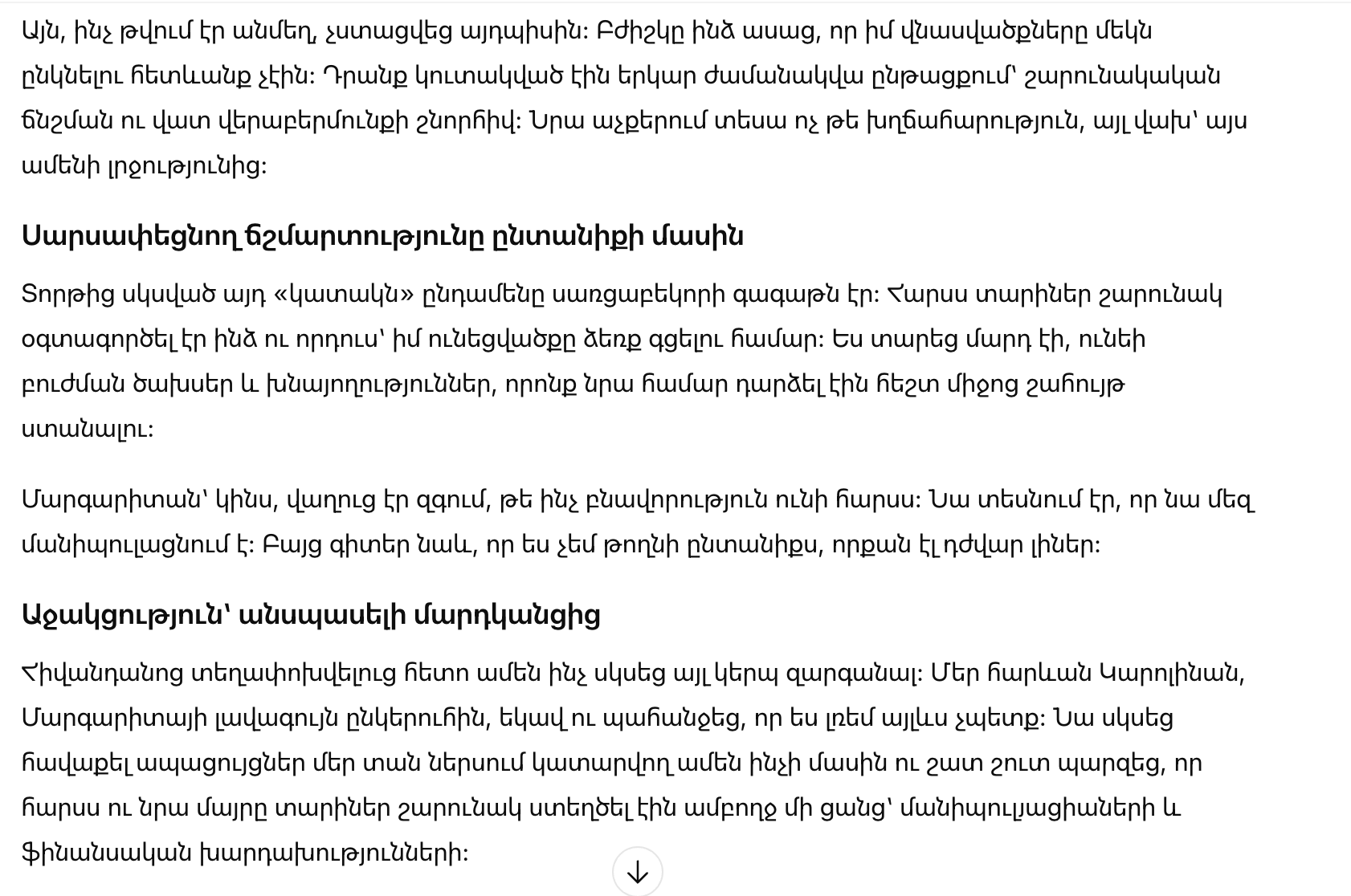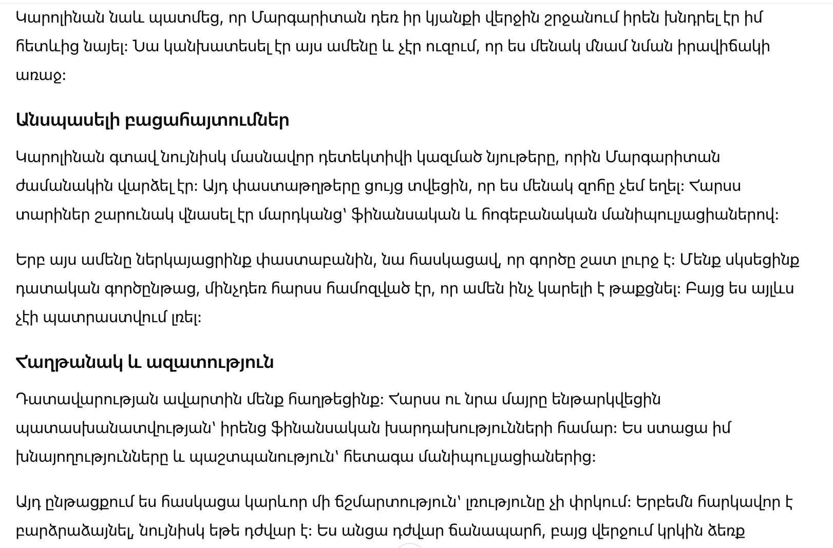 Мой опыт показал мне, как важно не бояться говорить правду и искать поддержку, когда вас пытаются манипулировать. Семья должна быть опорой, а не источником боли и страха. Я благодарен за всех тех, кто помог мне выйти из этого тупика, и надеюсь, что моя история будет полезной для тех, кто оказался в похожей ситуации.