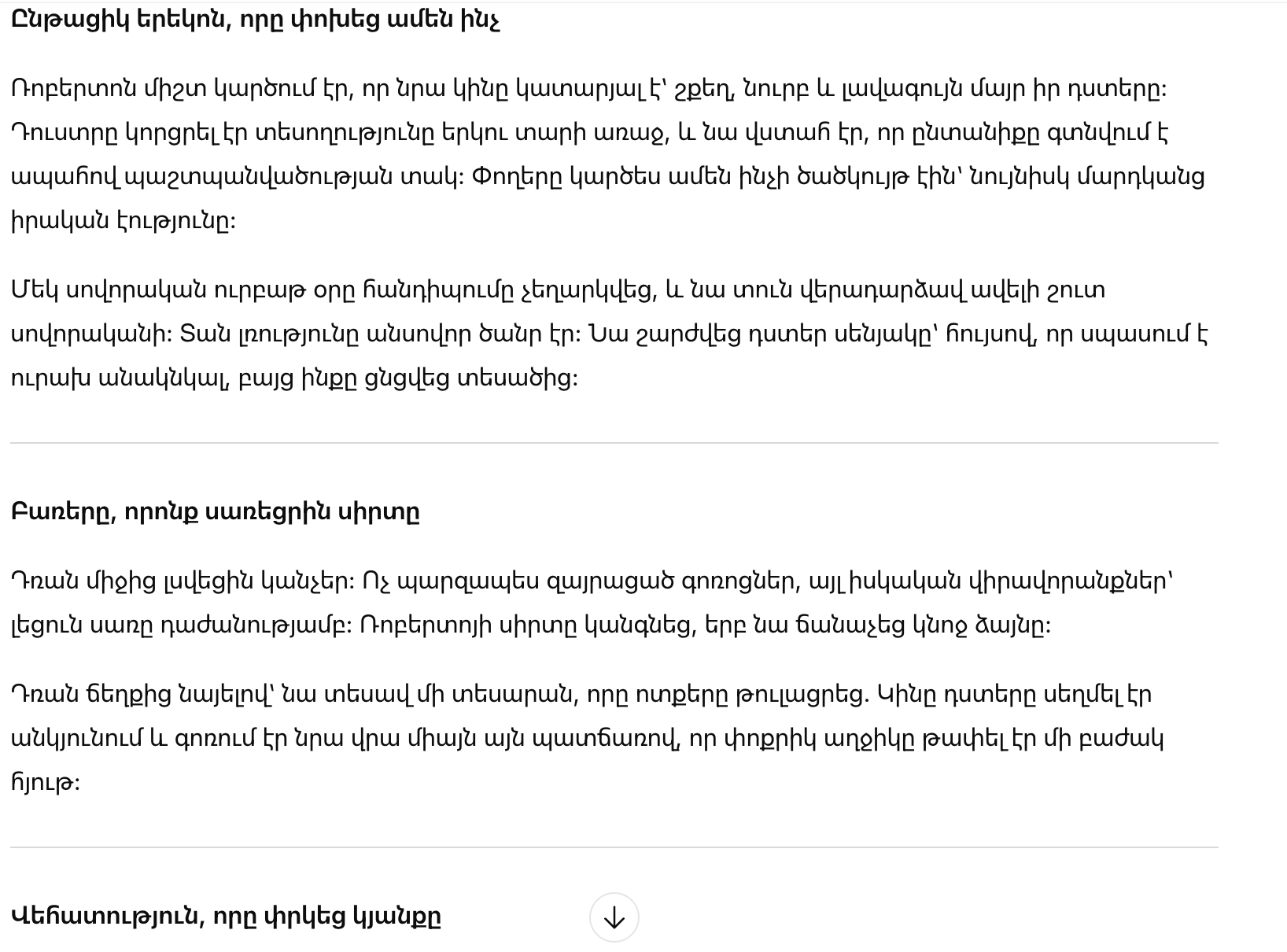 Роберто почувствовал, как рушится его представление о семье. Он понял, что настоящая забота, любовь и преданность проявляются в действиях, а не в словах и внешнем блеске.