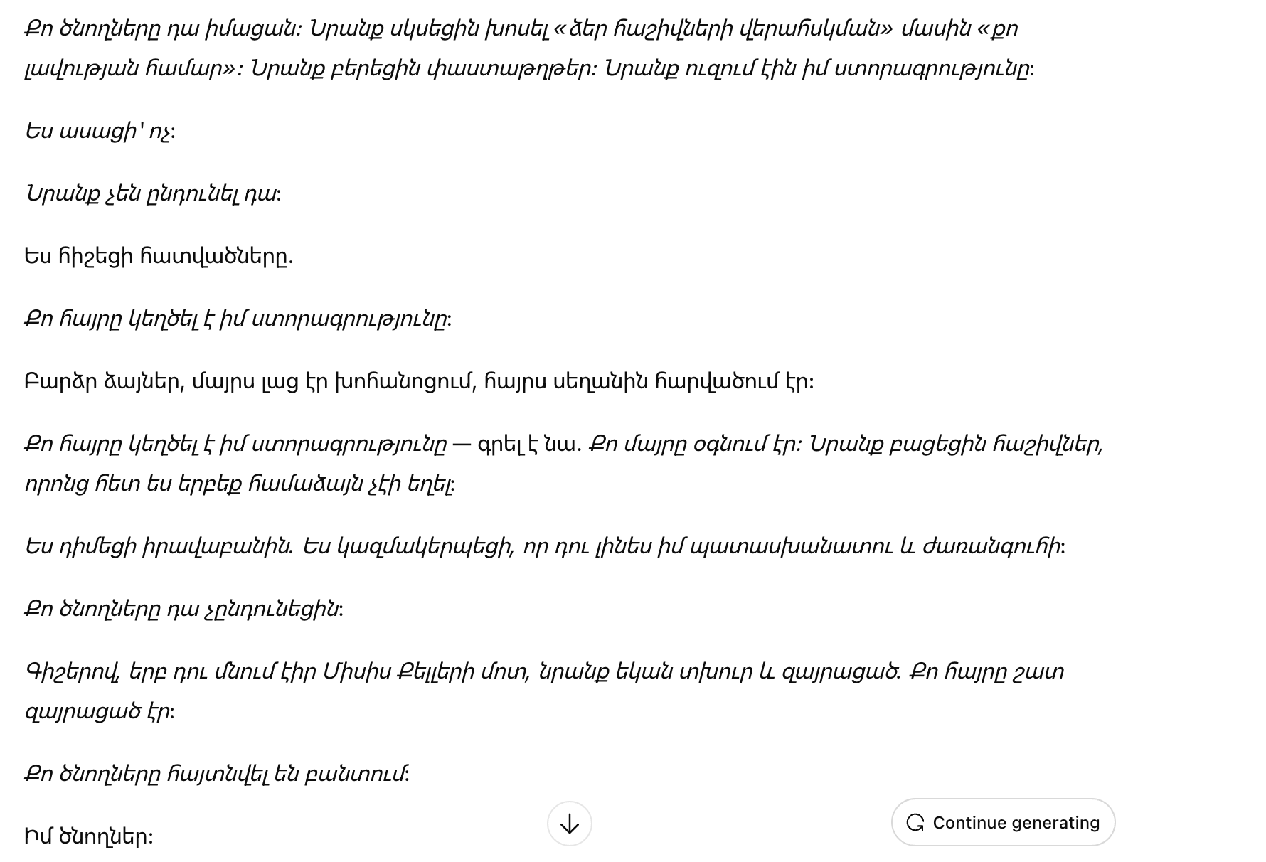 _Твои родители узнали об этом. Они начали говорить о «взятии под контроль» моих счетов «для твоей выгоды». Они принесли бумаги. Они хотели мою подпись._