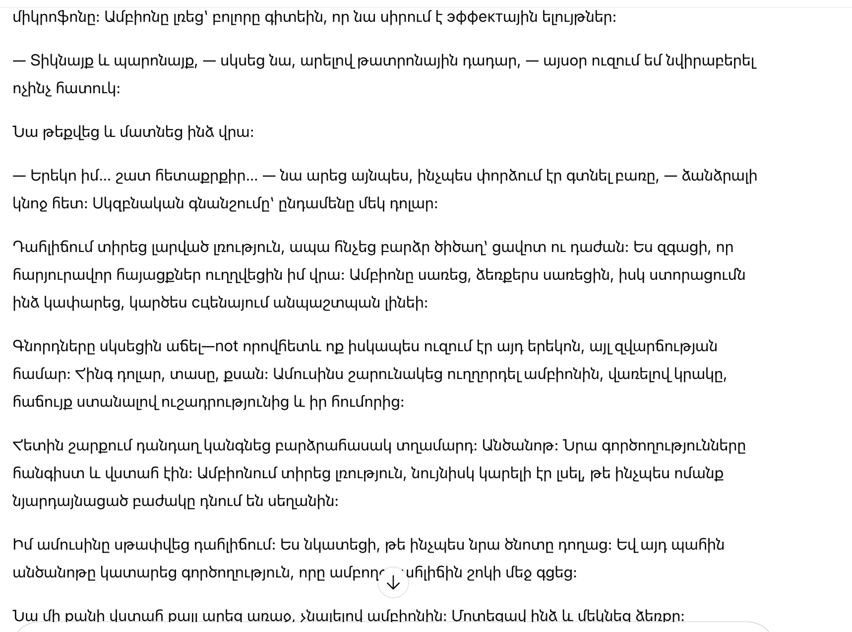 — Дамы и господа, — начал он, сделав театральную паузу, — сегодня я хочу пожертвовать нечто особенное.