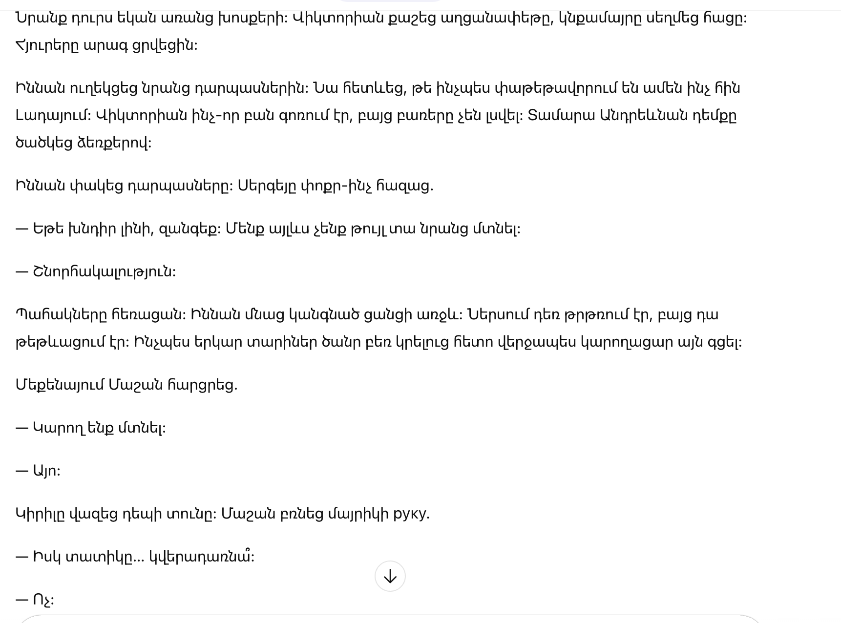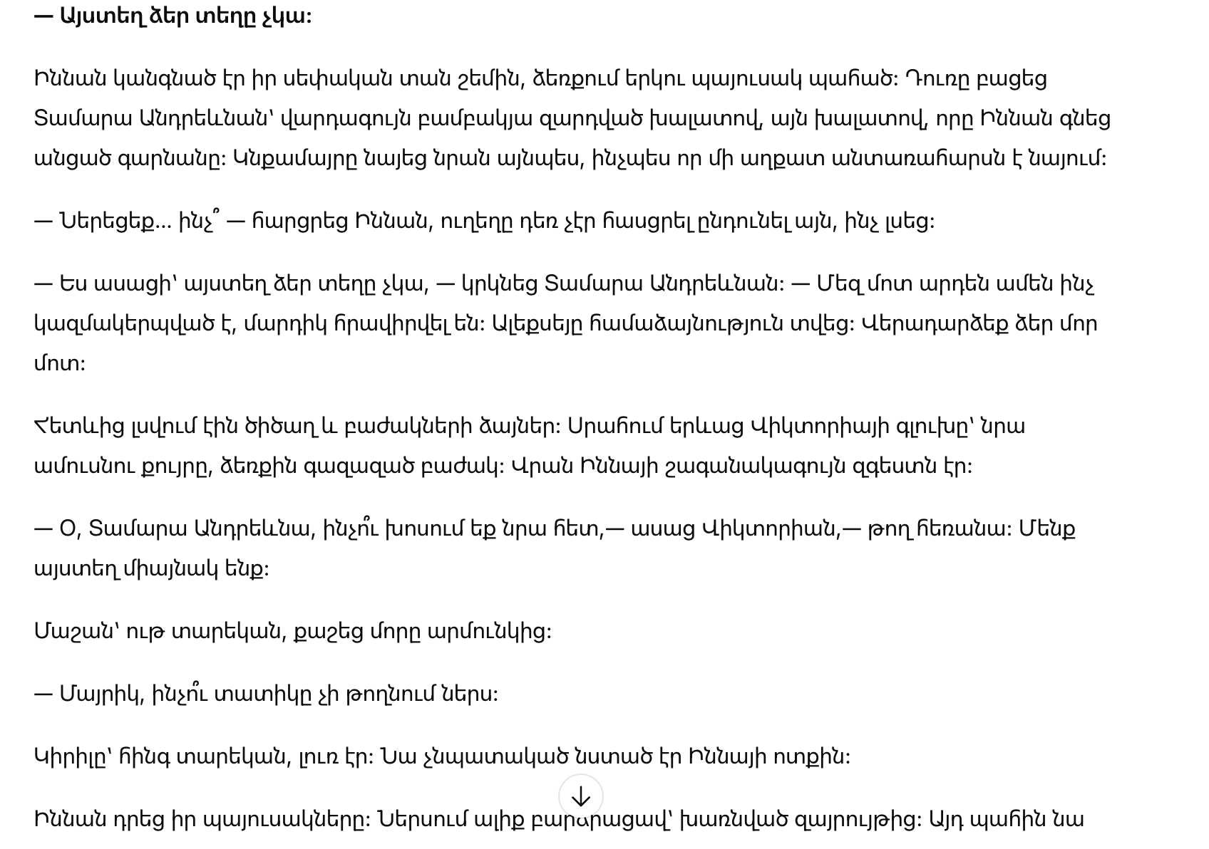 — О, Тамара Андреевна, зачем вы с ней разговариваете? — сказала Виктория, — Пусть уходит. Мы здесь одни.