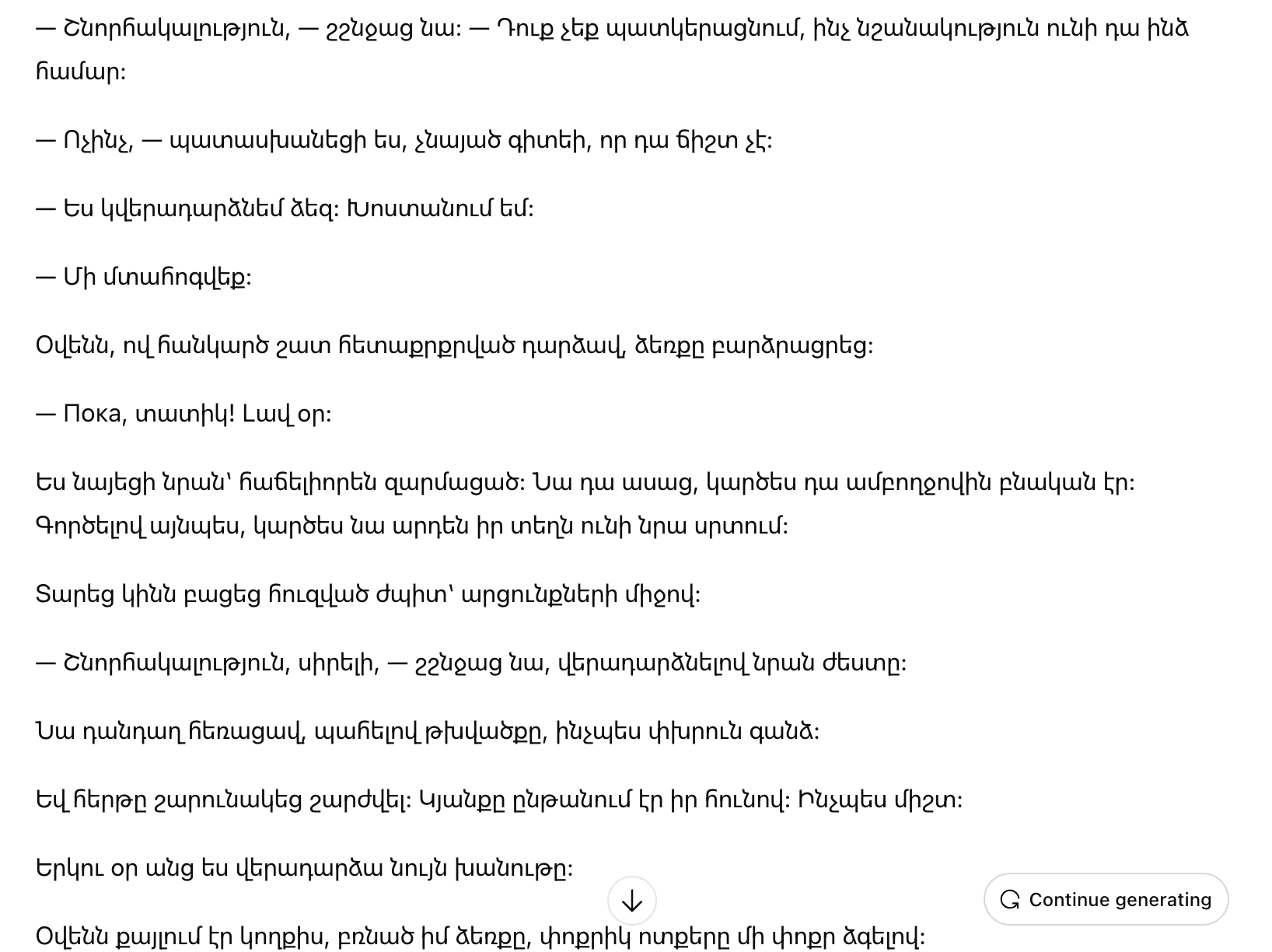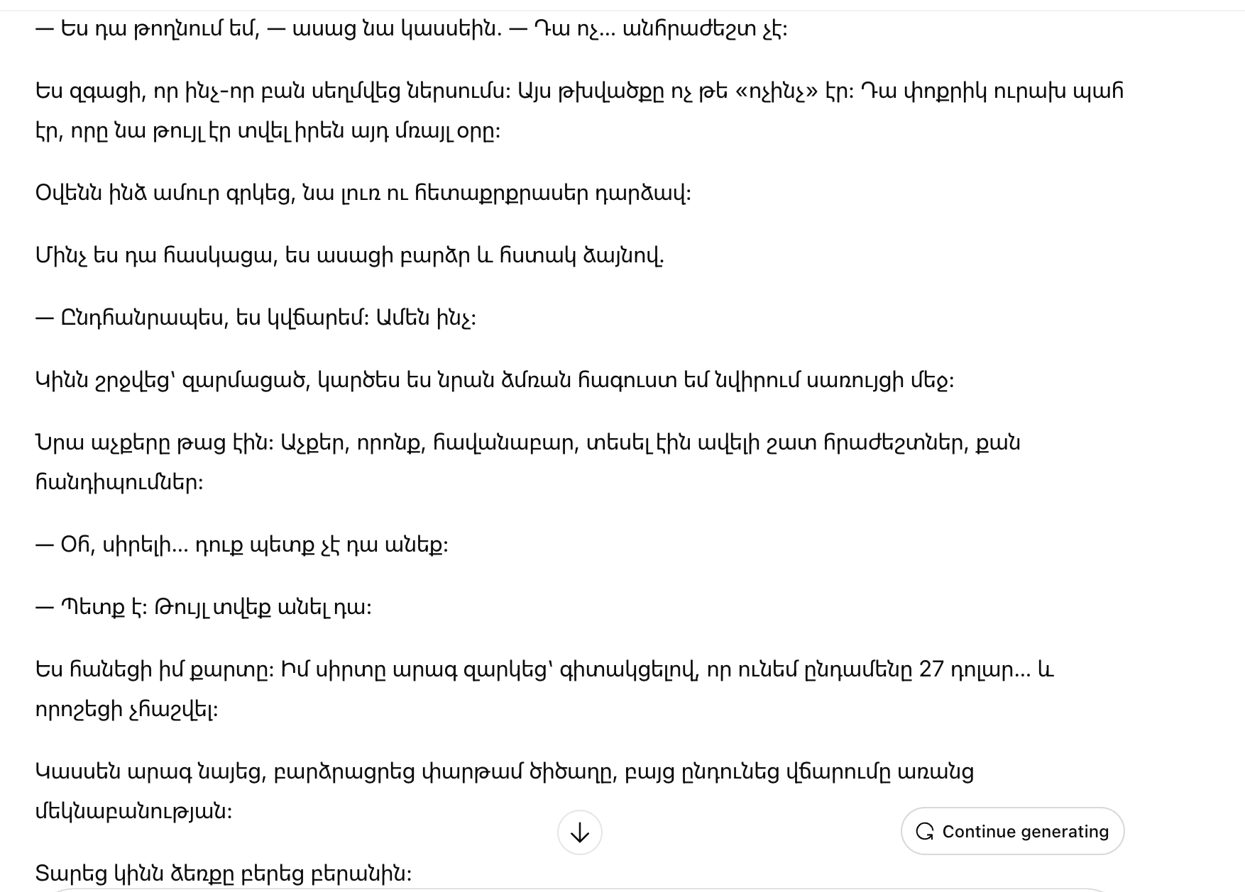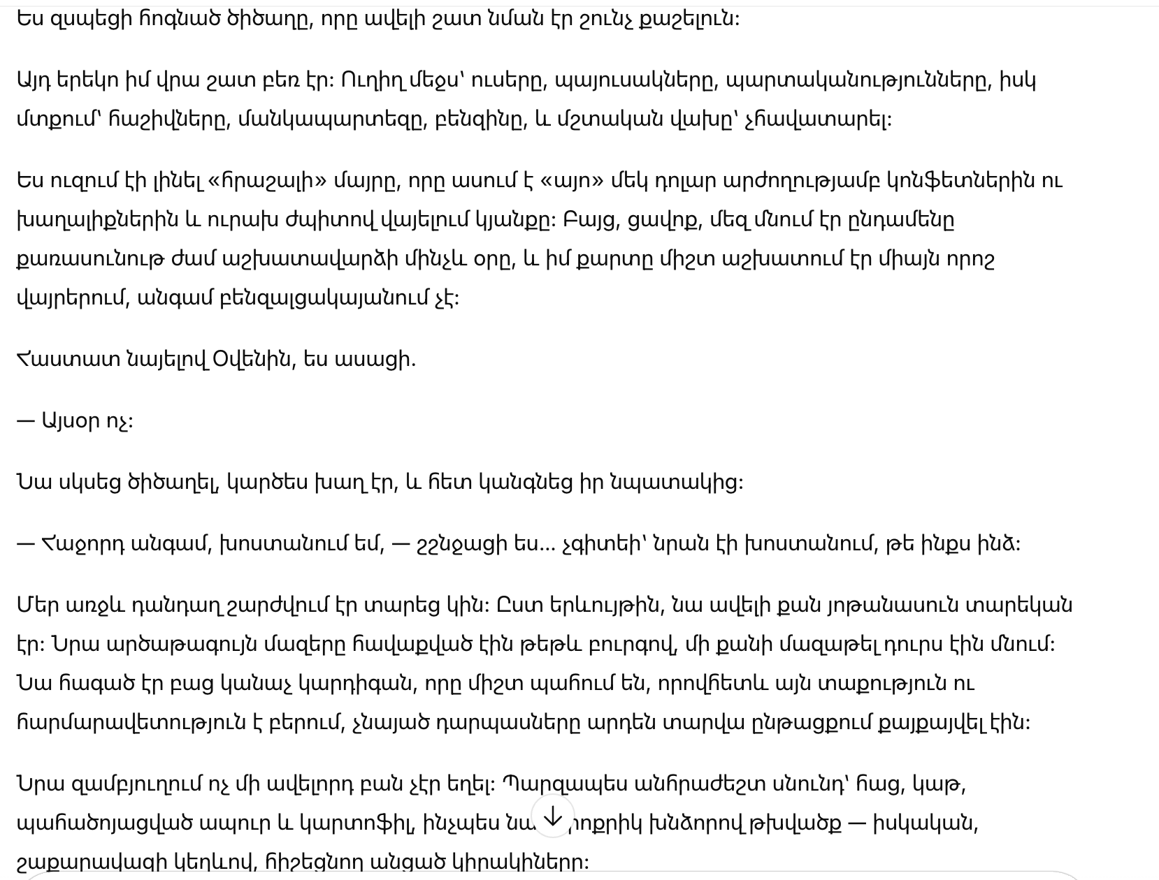 Женщина обернулась, удивленная, будто я вручаю ей зимнее пальто в мороз.