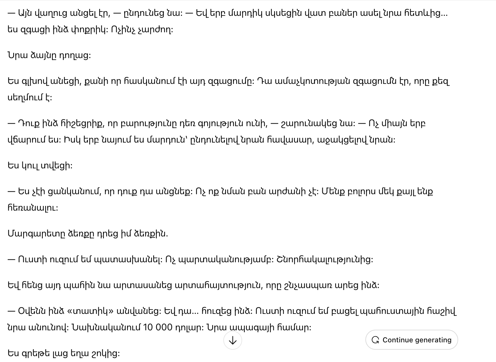 — Вы напомнили мне о том, что доброта все еще существует, — продолжила она. — Не только когда платишь. Но и когда смотришь на человека, воспринимая его как равного. Поддерживая его.