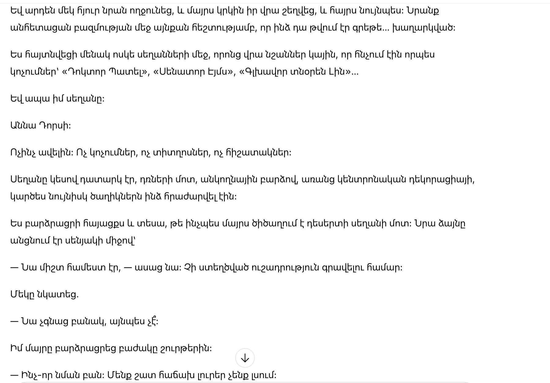 Мой отец лишь поднял взгляд — не на меня, а сквозь меня, как будто я была лишь воздухом, проходящим через комнату. Моя мать наклонила голову и прошептала: