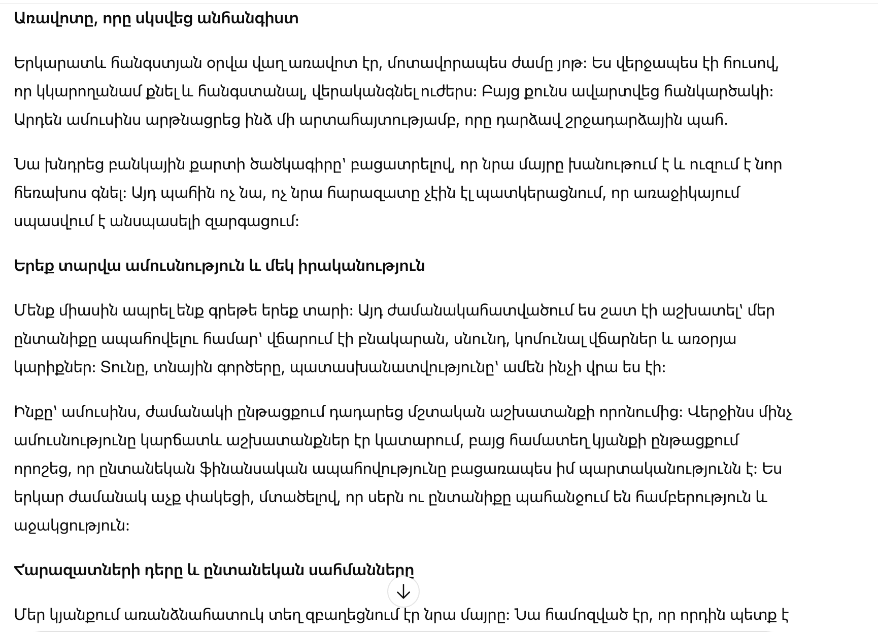 Мы прожили вместе почти три года. За это время я много работала, стараясь обеспечить нашу семью: оплачивала жильё, продукты, счета и повседневные нужды. Дом, быт, ответственность — всё было на мне.