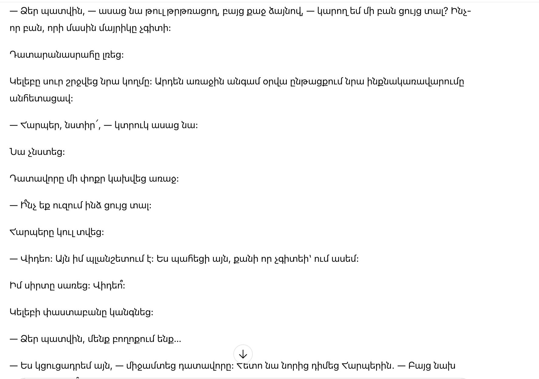 Как только адвокат Калеба закончил, Харпер шевельнула рукой. Она подняла её, маленькую, но решительную.