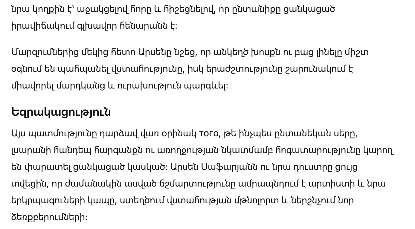 После одной из тренировок Арсен отметил, что искренний разговор и открытость всегда помогают сохранить доверие, а музыка продолжает объединять людей и дарить радость.
