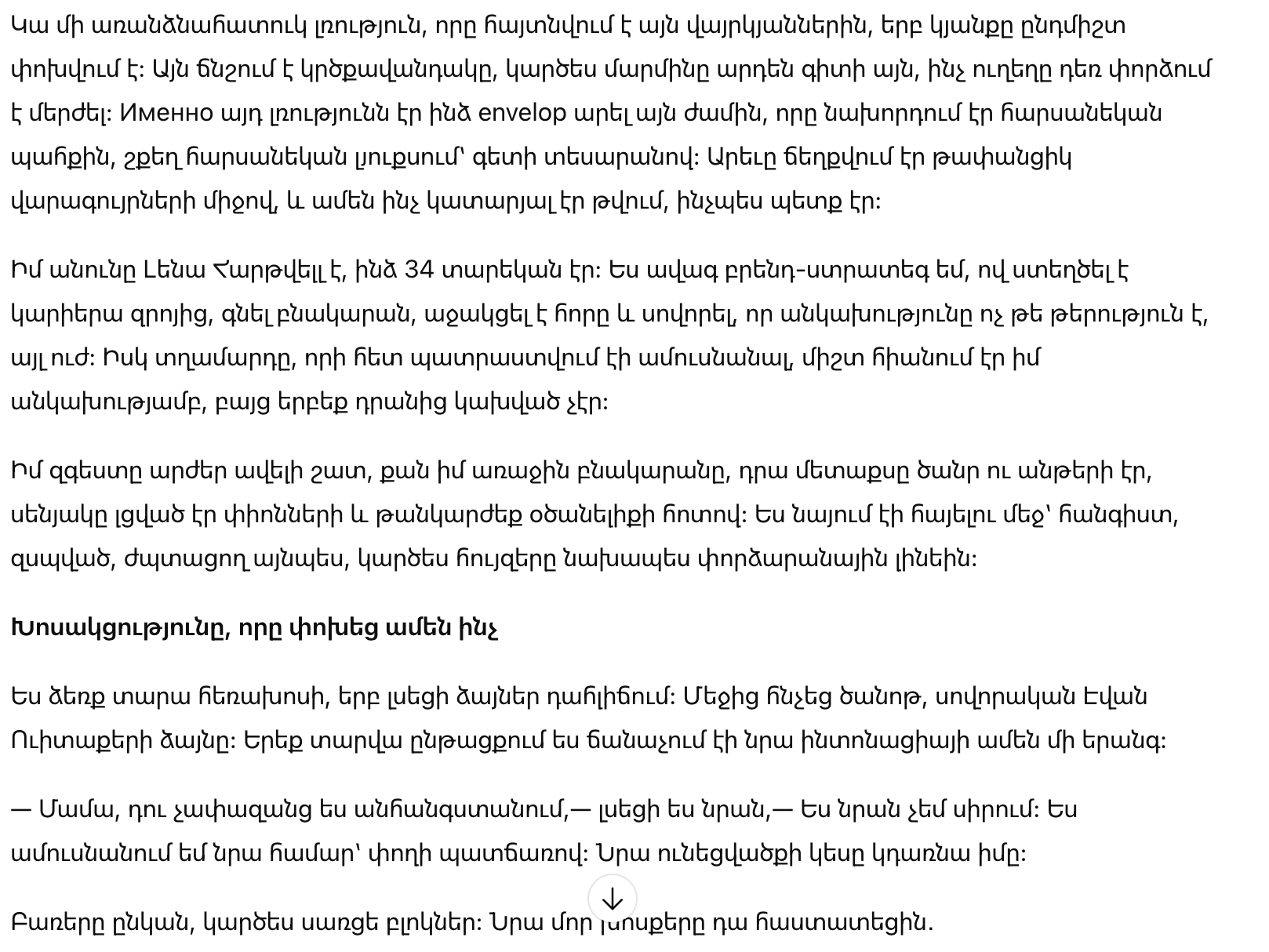 Меня зовут Лена Хартвелл, мне было 34 года. Я старший бренд-стратег, построившая карьеру с нуля, купившая квартиру, поддерживающая своего отца и научившаяся, что независимость — не недостаток, а сила. А мужчина, за которого я собиралась выйти, всегда восхищался моей независимостью, но никогда не зависел от неё.