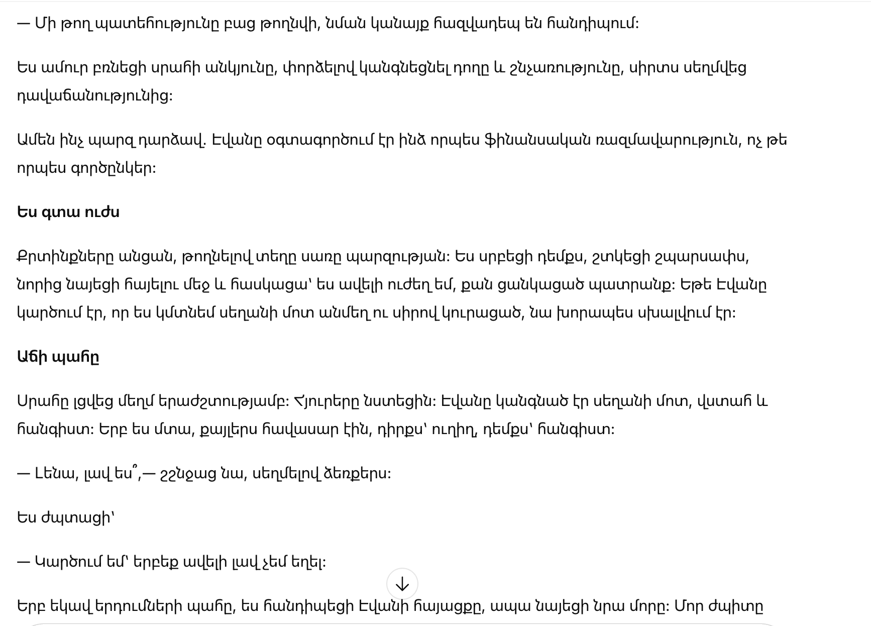 — Я строила всё сама: карьеру, дом, безопасность, — ответила я. — Я хотела выбрать партнёра, а не стать финансовым инструментом.