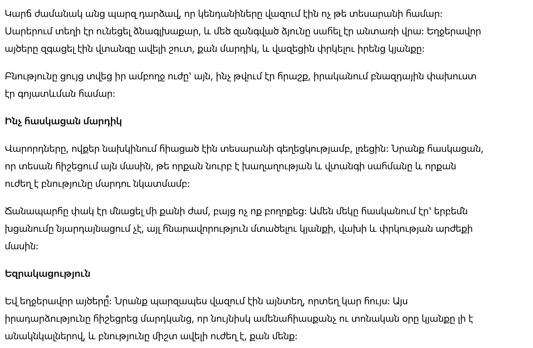 Водители, ранее восхищавшиеся красотой сцены, замолчали. Они осознали, что стали свидетелями напоминания о том, как хрупка грань между спокойствием и опасностью, и как сильна природа по сравнению с человеком.