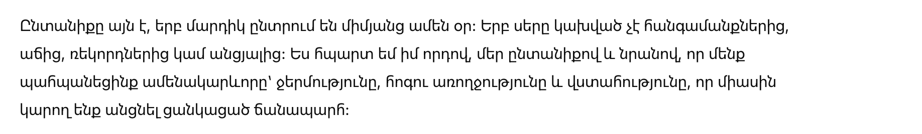 Семья — это когда выбирают друг друга каждый день. Когда любовь не зависит от обстоятельств, роста, рекордов или прошлого. Я горжусь своим сыном, нашей семьёй и тем, что мы сохранили главное — тепло, здоровье души и уверенность, что вместе можно пройти любой путь.