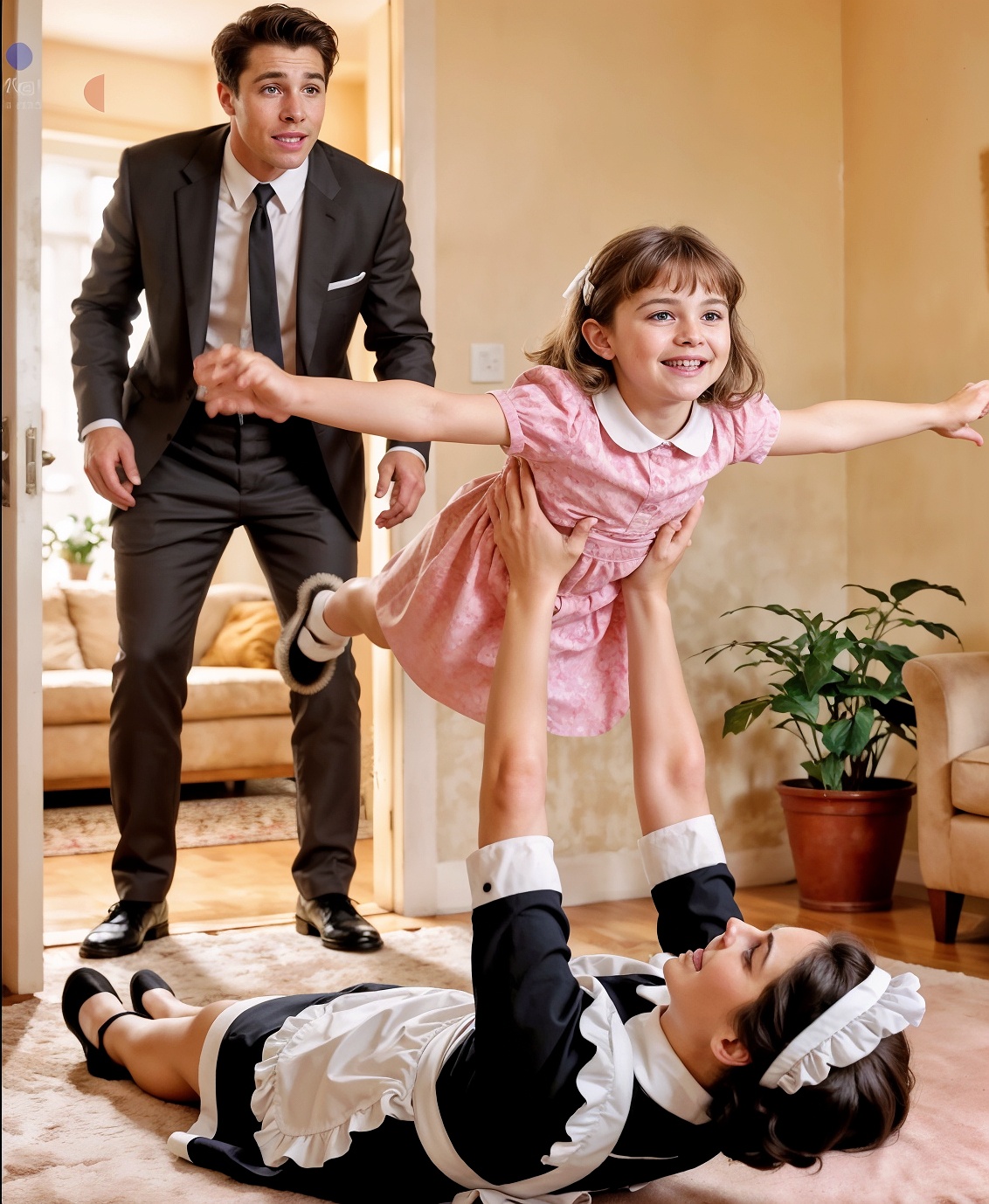 Я замер на пороге игровой комнаты. Марина лежала на ковре, держа Лили в руках, как маленький самолётик. Розовое платьице развевалось, глаза Лили сияли.