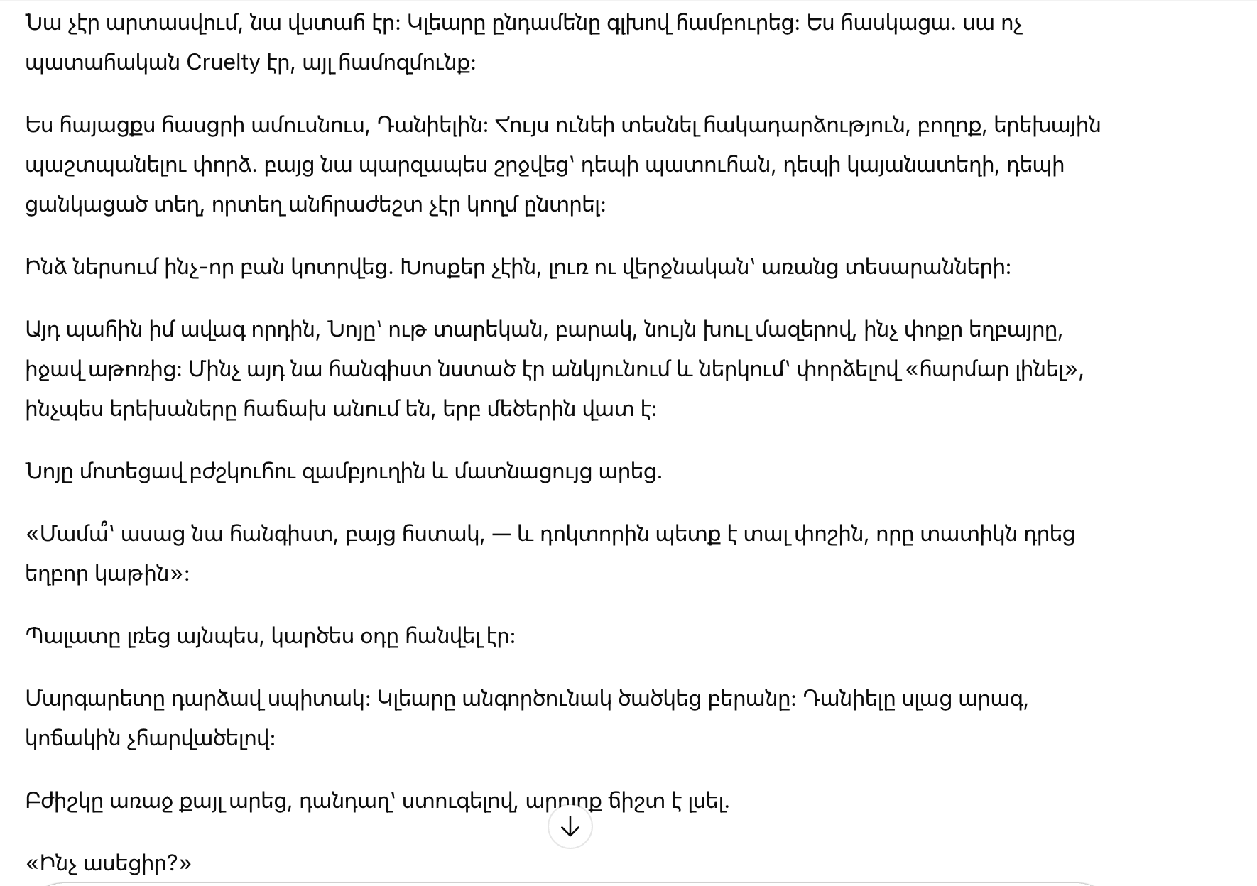 Я перевела взгляд на мужа, Даниэля. Я ждала хоть чего-то: возражения, возмущения, попытки остановить этот холод. Но он не встретился со мной глазами.