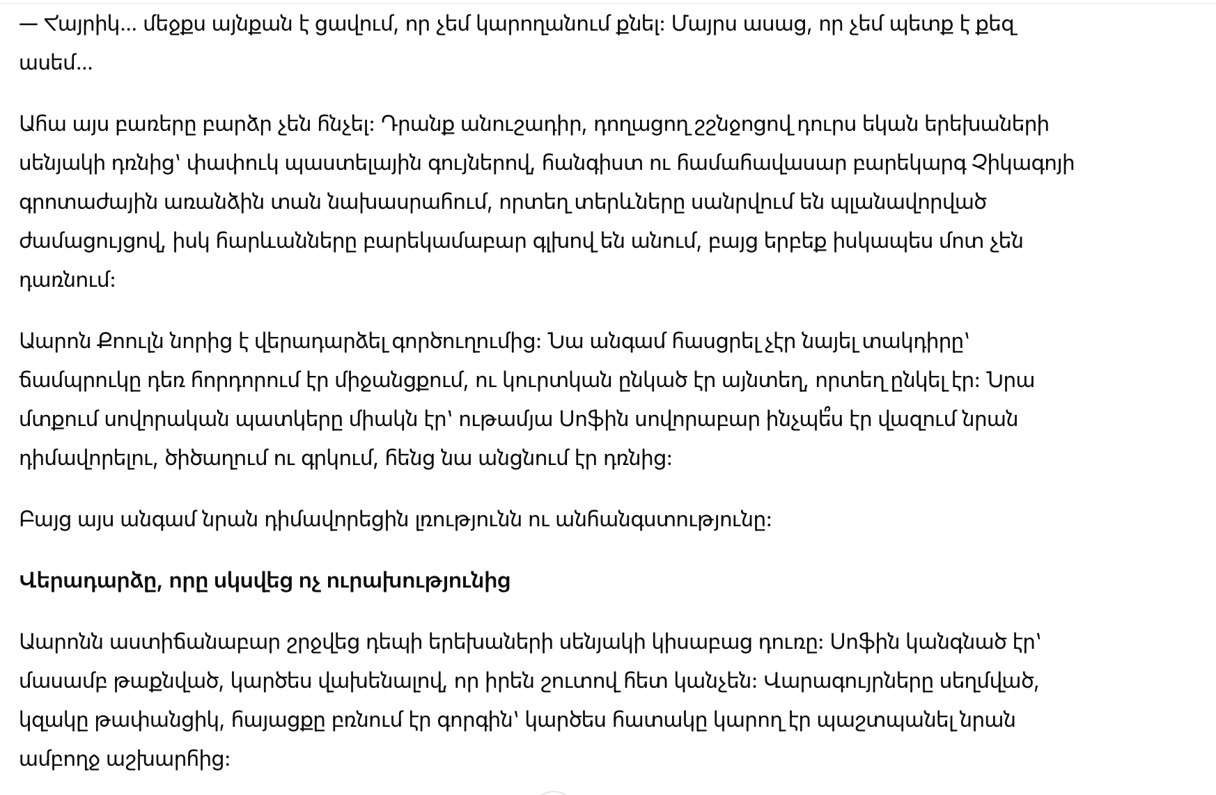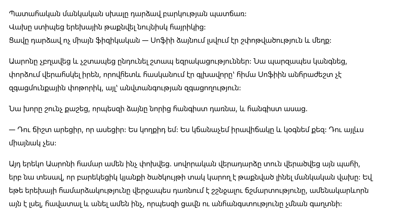 Аарон не закричал и не бросился делать поспешные выводы вслух. Он просто замер, стараясь удержать себя в руках, потому что понимал главное: сейчас Софи нуждается не в буре эмоций, а в ощущении безопасности.